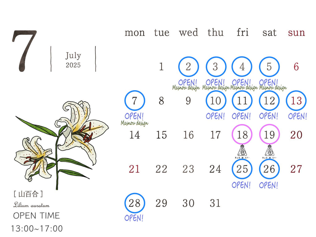 店舗営業につきましては下記カレンダーのご確認の上、ご来店ください。