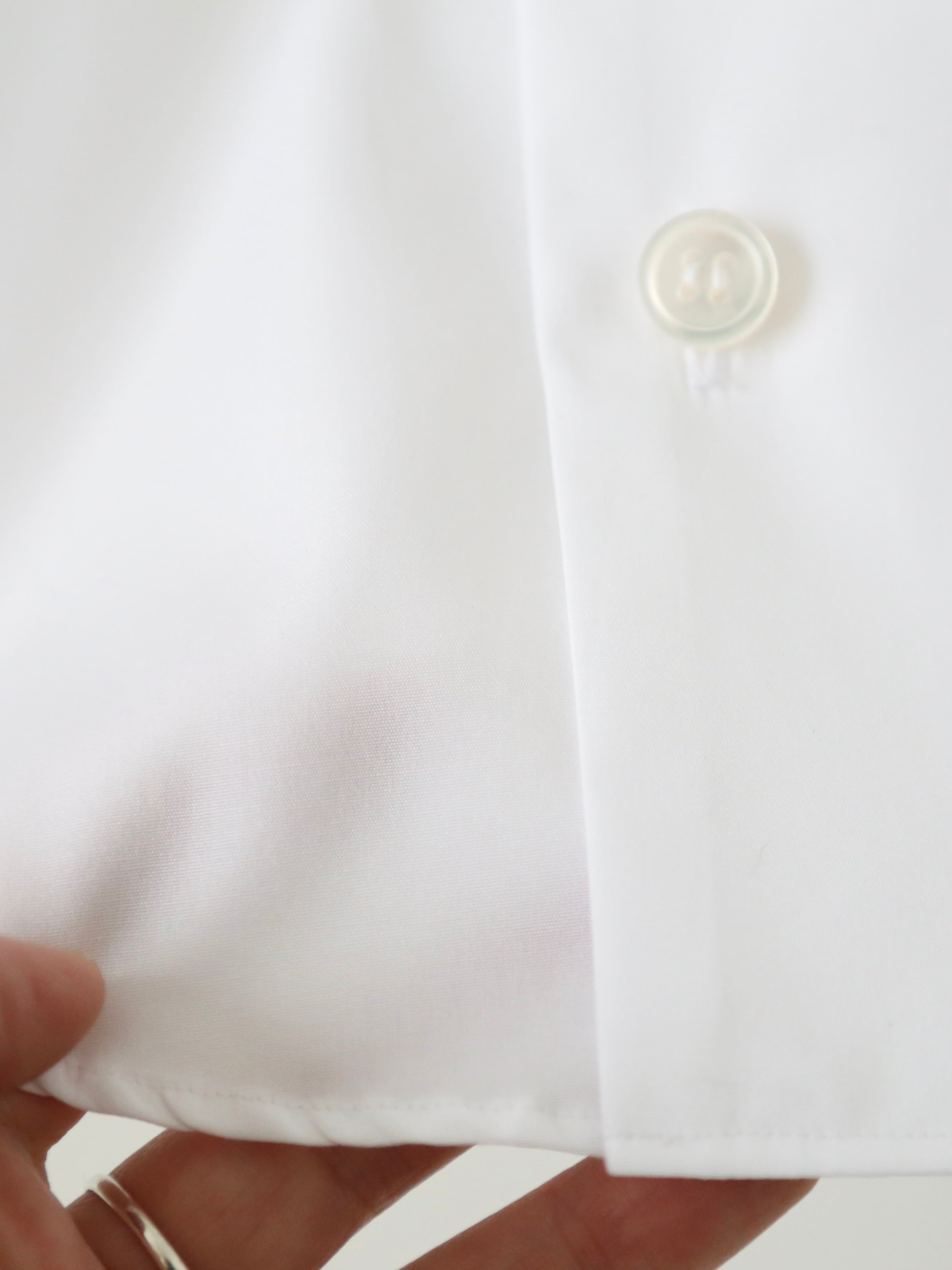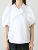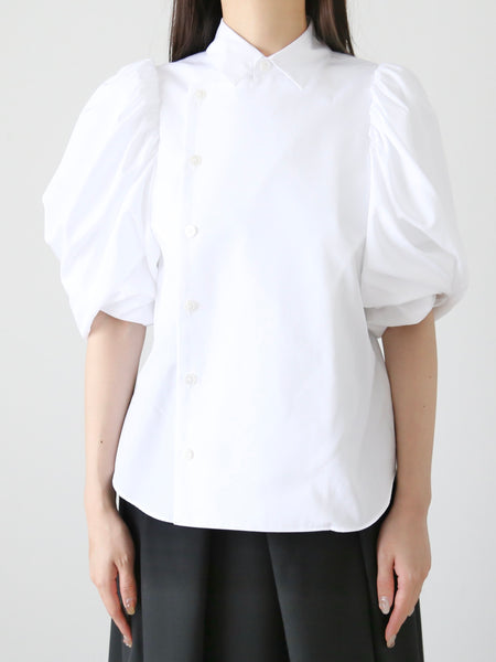 襟はシャープでお袖は捻ったパフスリーブで変化球でふんわり。バランスが絶妙で、いろんなスタイリングが楽しめそう!