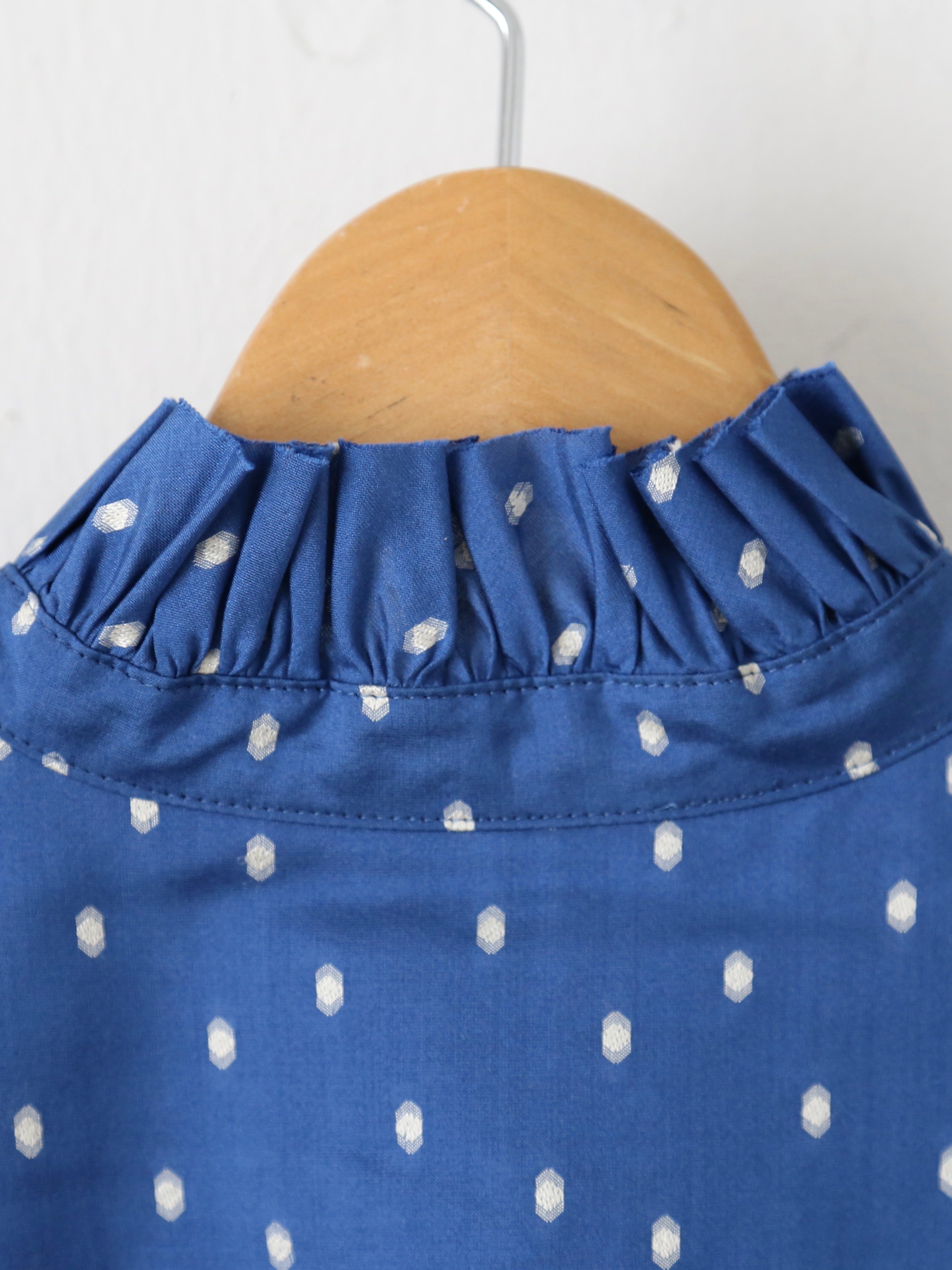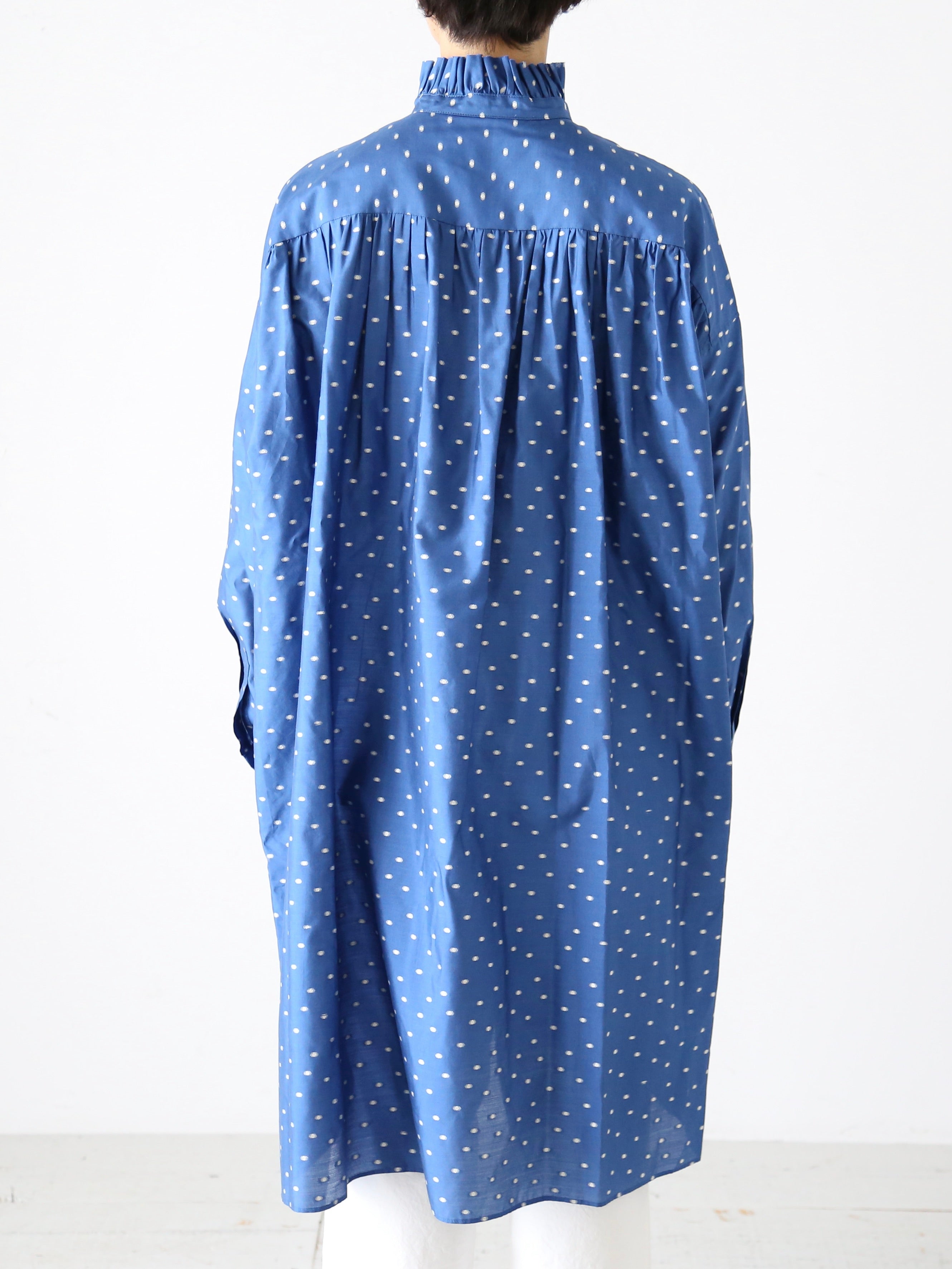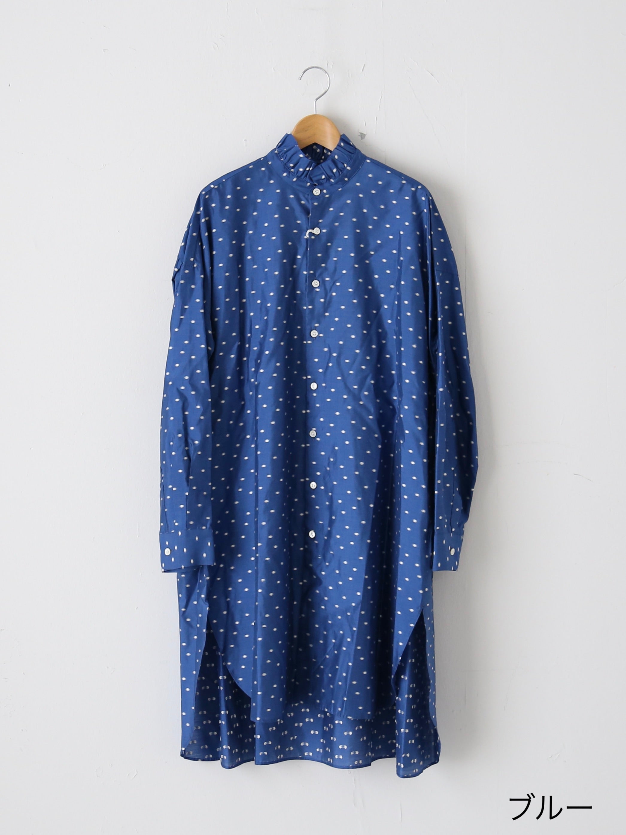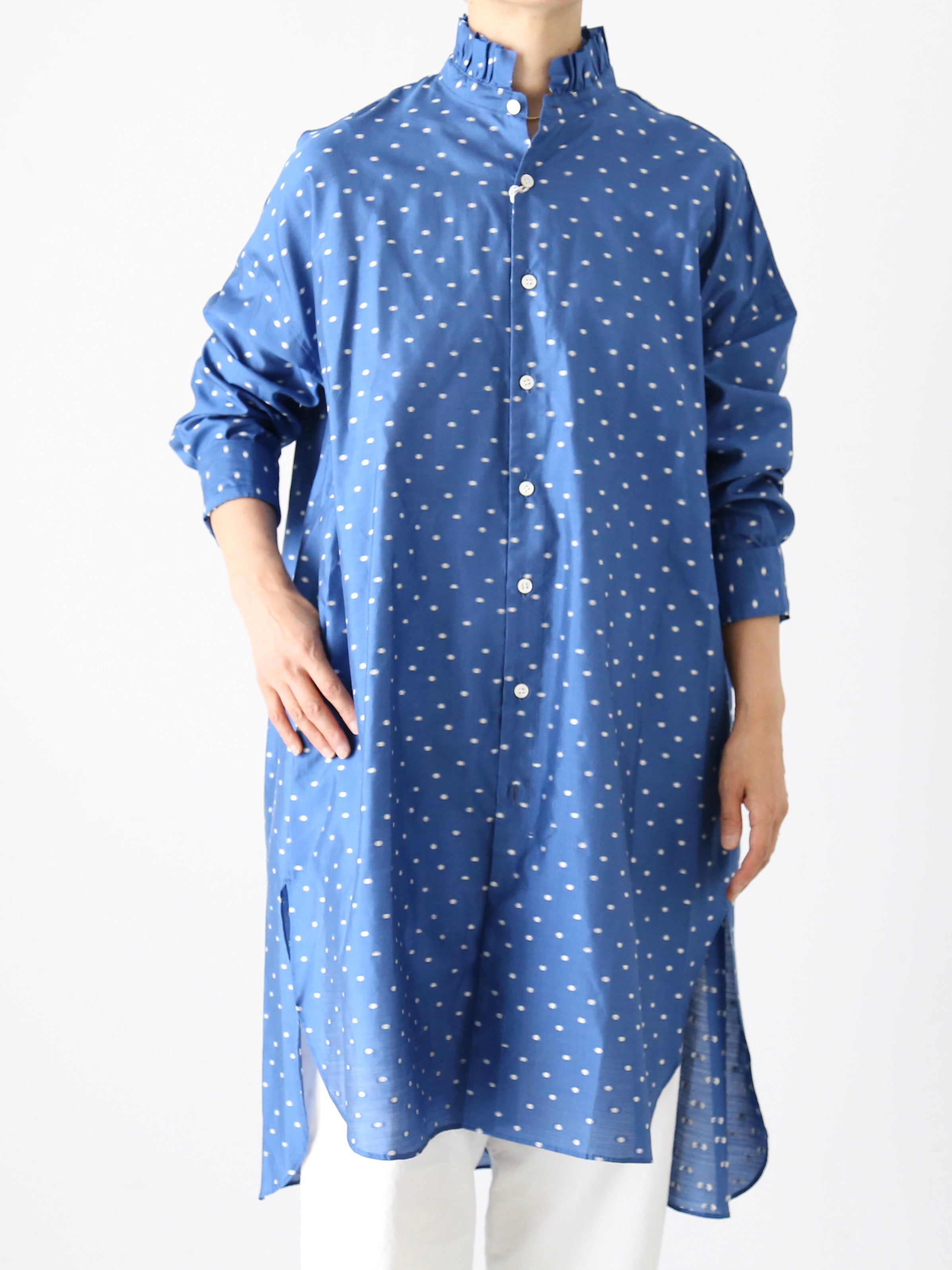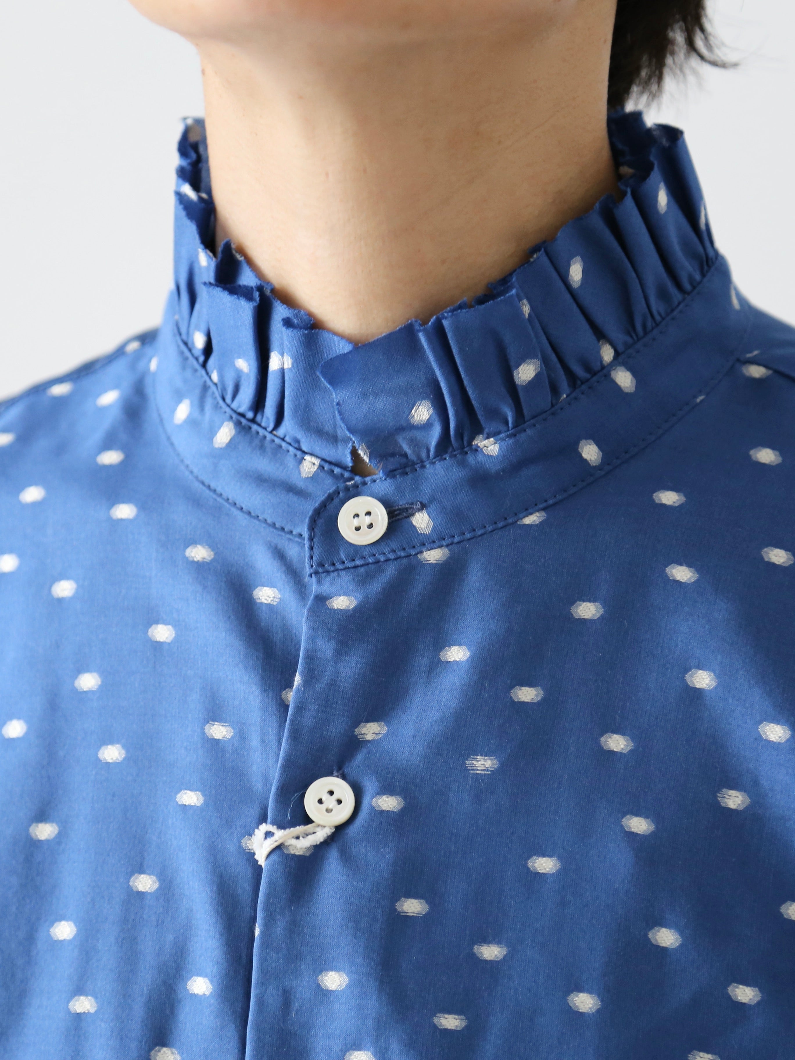 ジャガードポルカドットフリルカラーロングシャツ [6299]