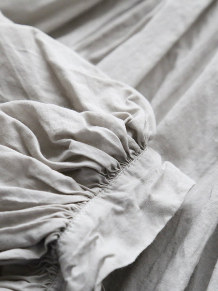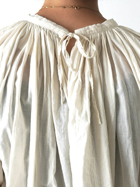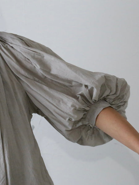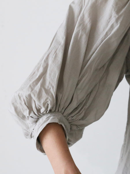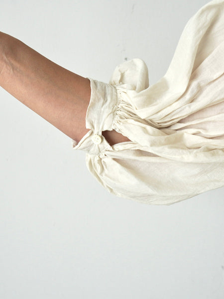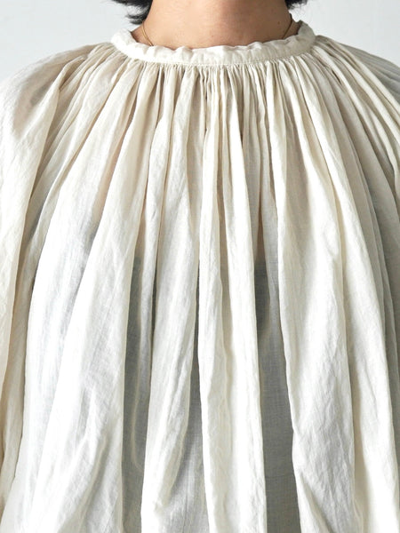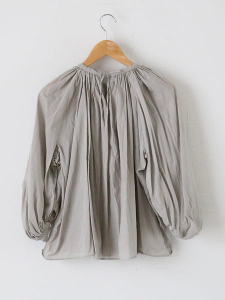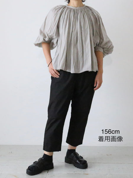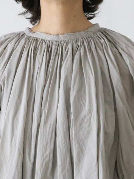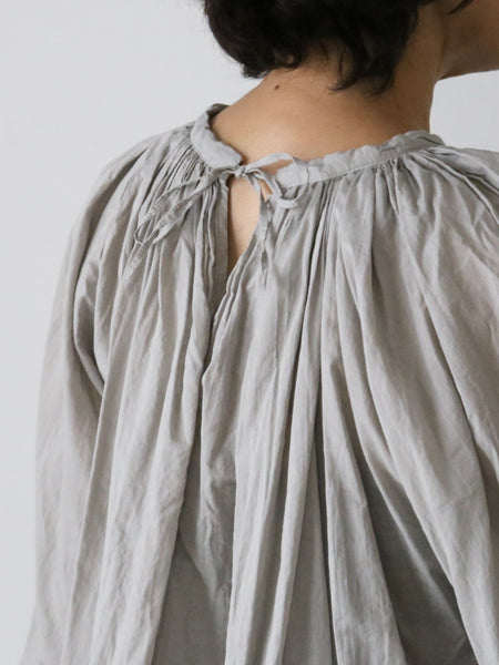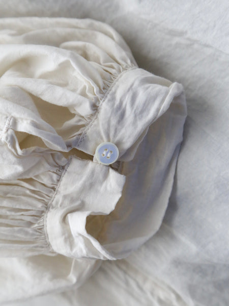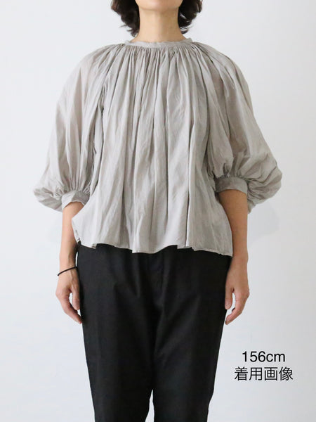 細かいギャザーが首元、そしてお袖口も。優雅な雰囲気です。