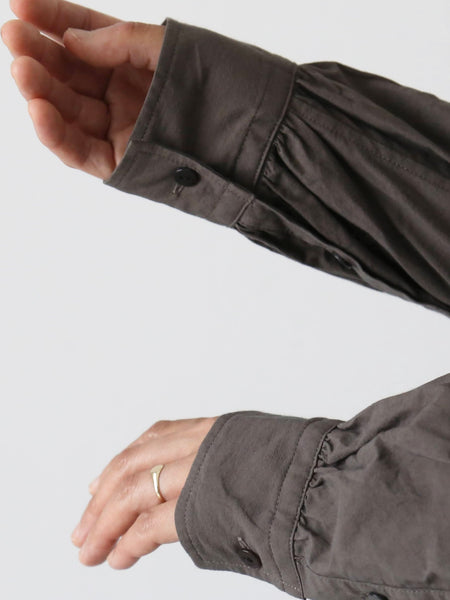 ドロップショルダーからの細かいギャザーとお袖の部分の細かいギャザー。