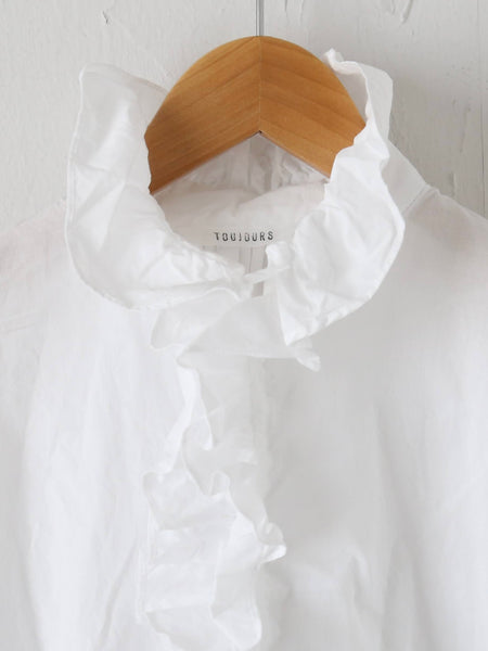 形は毎回大人気のラッフルシャツ。