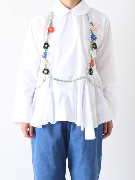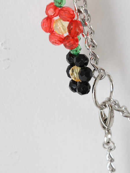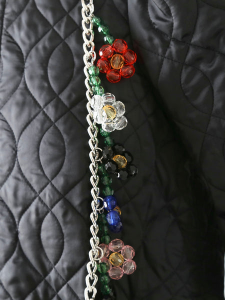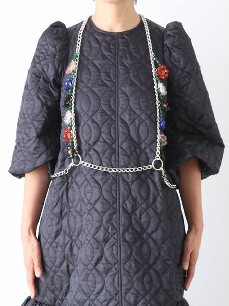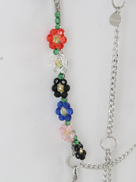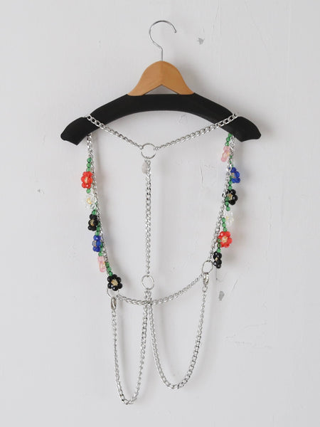 毎回ワクワクのnoirのハーネス。今季はビースのお花×チェーンで登場です。1つ1つ作られたカラフルなビーズのお花。着けるだけでハッピー、そしてポイントに。チェーン部分は程よい重みでモードな雰囲気。バックシルエットはシンプルでかっこ良さも。*ビーズは衝撃により欠けや破損など生じます。また引掛けにも十分ご注意ください。
