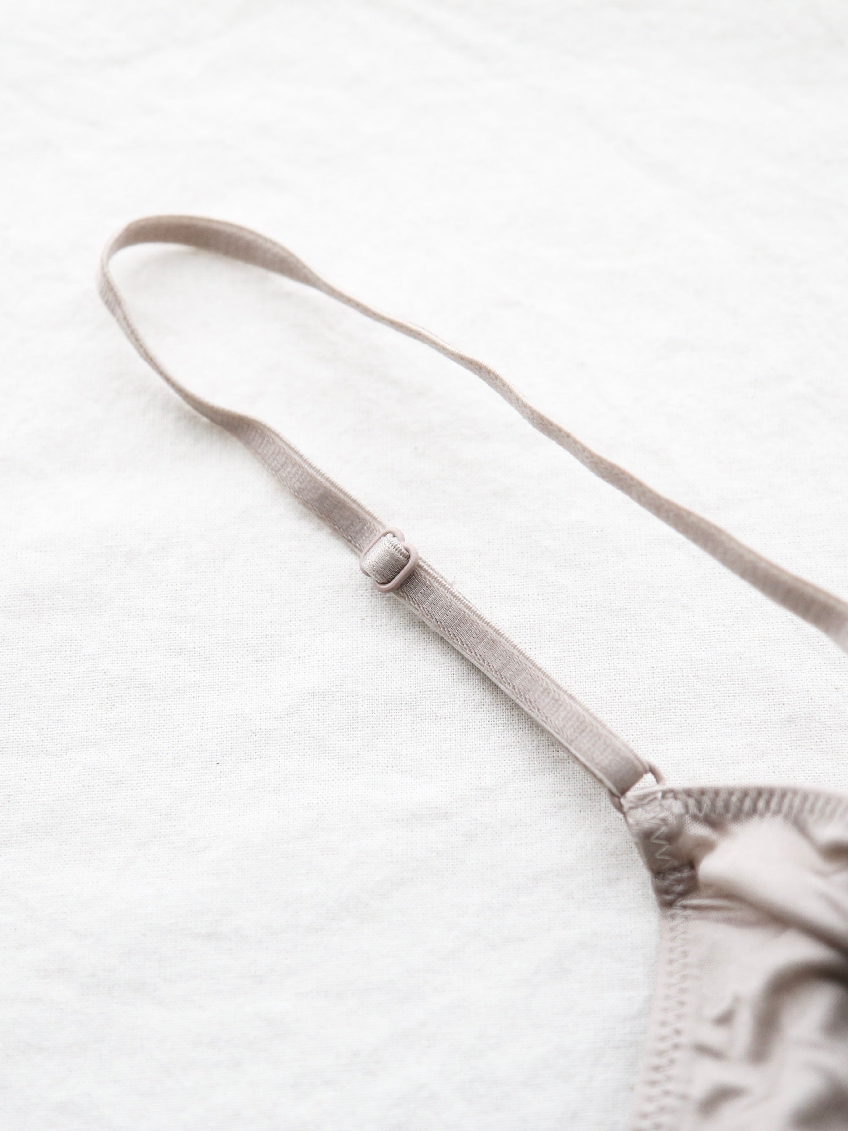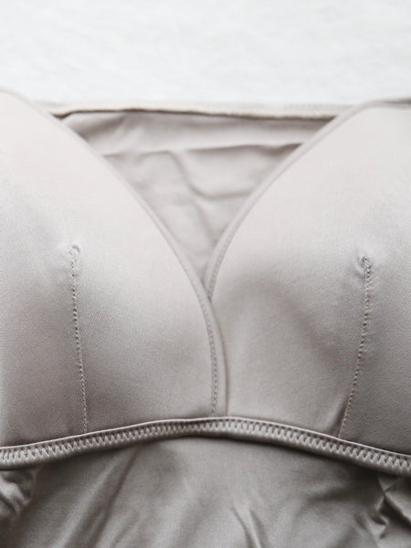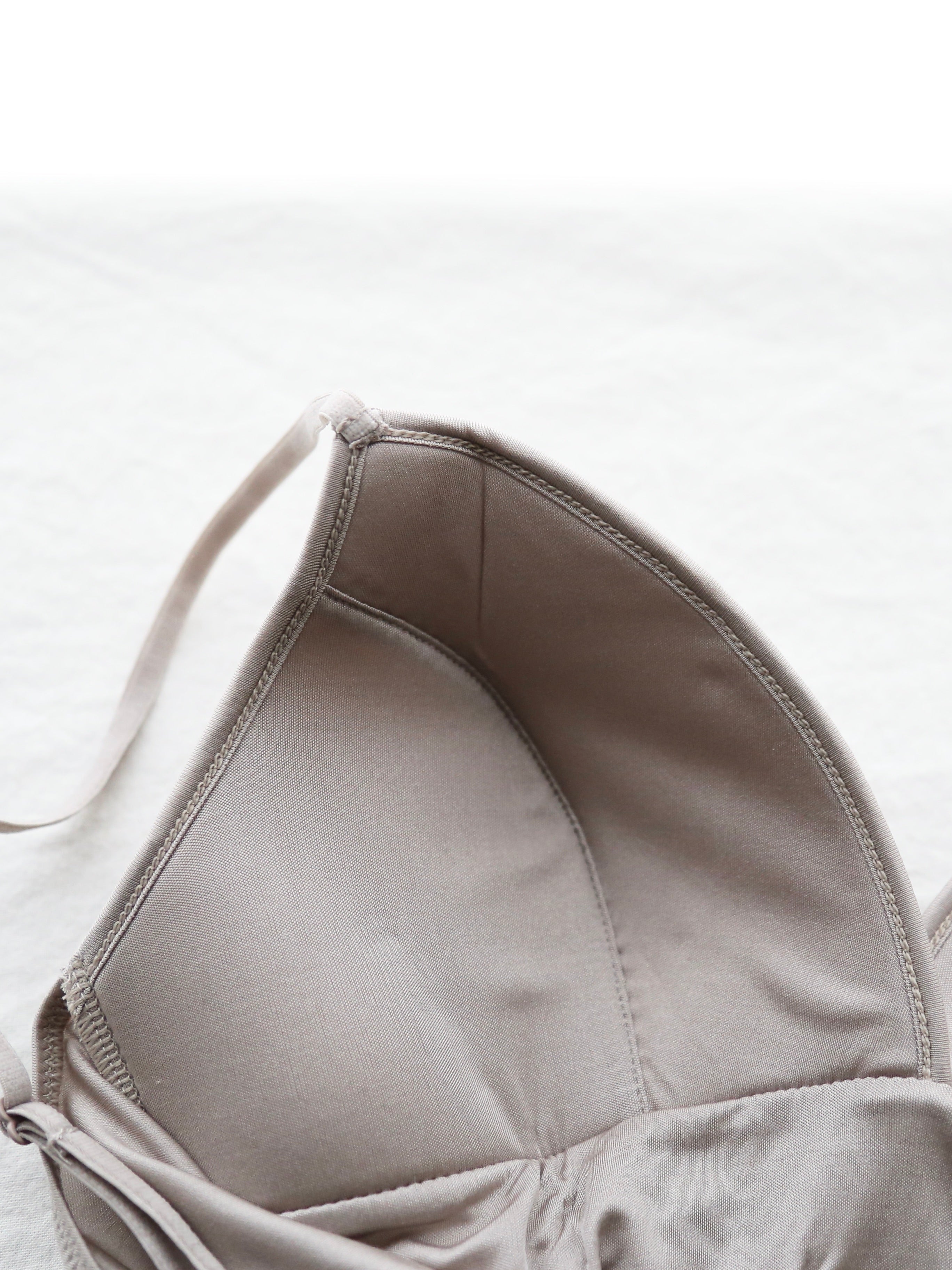 アンダーバストは細ゴムで、機能を保ちながら締めつけ感を抑えました。