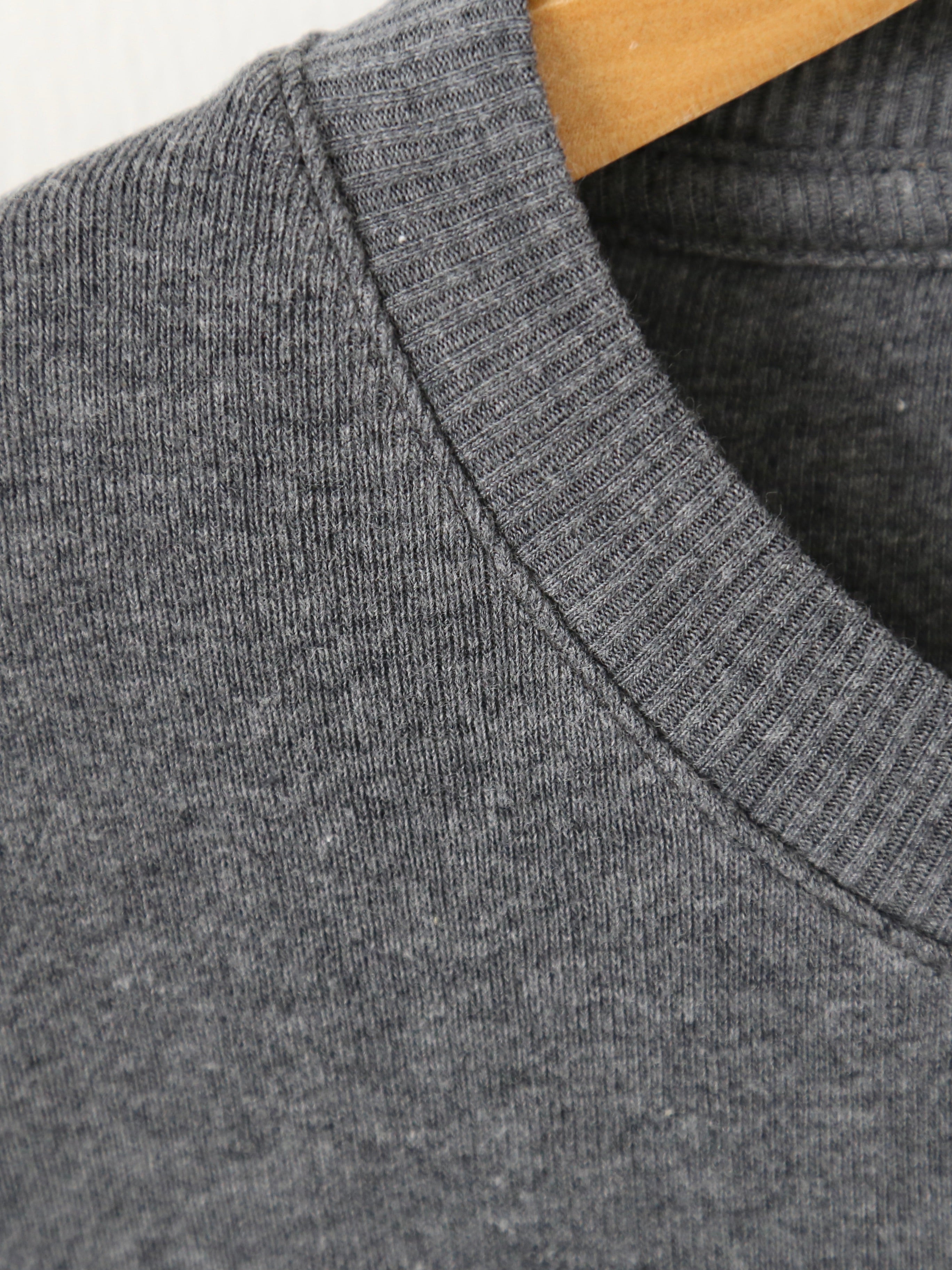 衿は2×2のリブの衿裏に伸び留めテープを取り付け、型崩れ防止の配慮をしております。