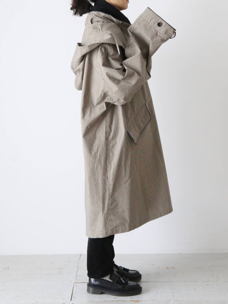 トラデショナルなガンクラブチェックのオーバーサイズのコート。