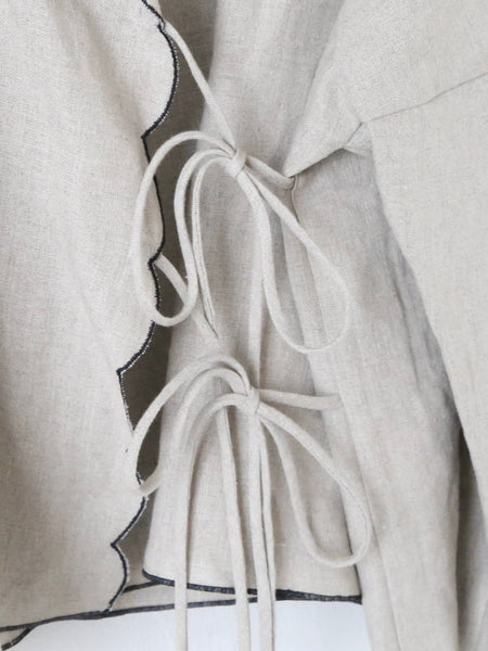 カーディガンのように前あきでお召しいただいて、リボンをゆるっと垂らしてラフにお召しいただくのもおすすめです。
