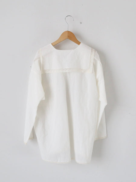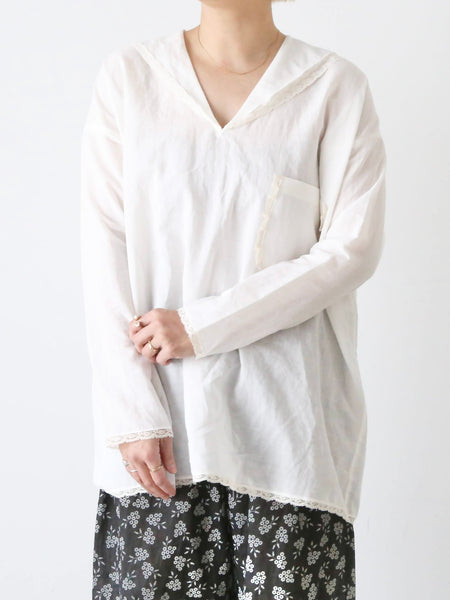 ジョンリバーが1813年に発明したリバー織機で作られたリバーレースやクルーニーレースを用いてアンティークの雰囲気を纏ったブラウスです。