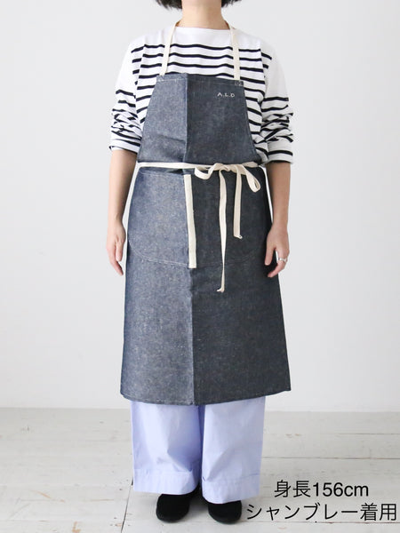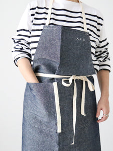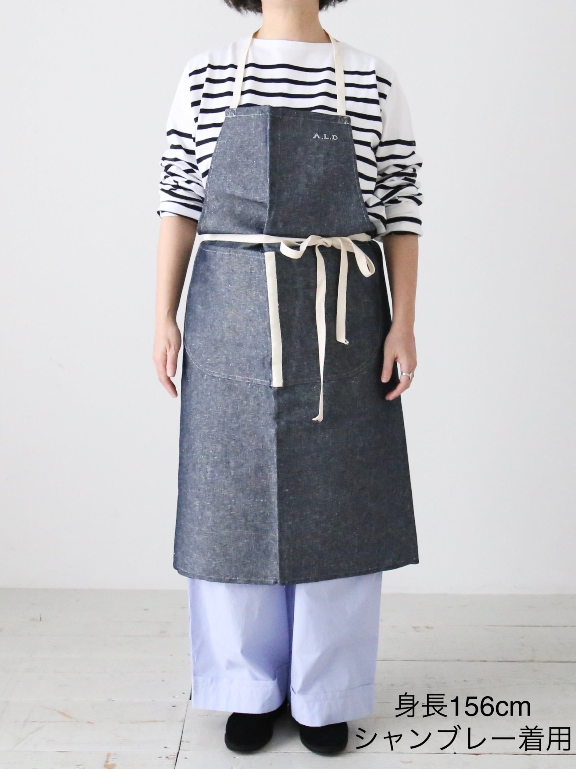 ネイビーとシャンブレーのお色が美しいエプロン。