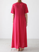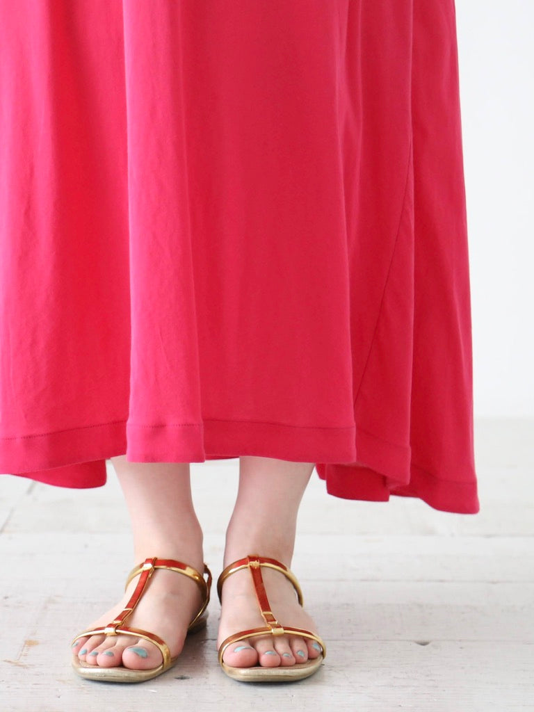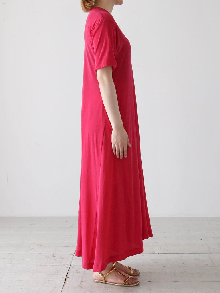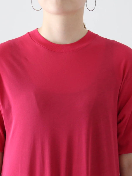 クルーネックとたっぷりととられたスカート部分がラフでいながら、とろみのある生地の綺麗さがラグジュアリーです。