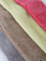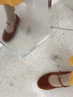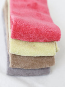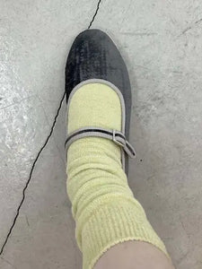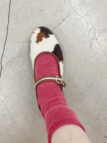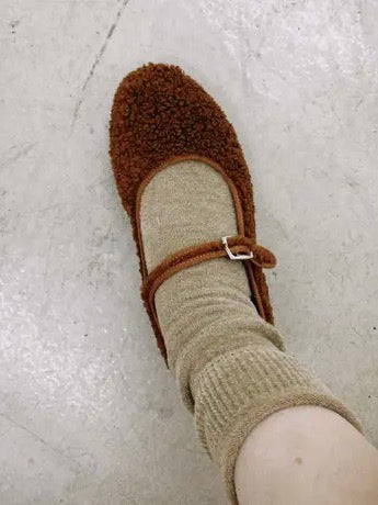 モール素材のもこもことした質感がかわいいデザイン。途中で折って2つ折りソックスとして履くことも、もちろんそのまま長め丈で履くこともできます。