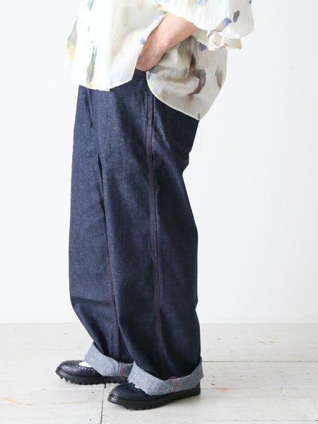 ピンクステッチが特徴的なデニムペインターパンツです。