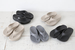 OOFOS® 製品に使われている特殊素材 OOfoam は、前進力を生む事を目的とした一般的な EVA 素材のミッドソールと異なり、衝撃の反発を 37% 抑えることができ着地による足裏への衝撃を軽減することができます。