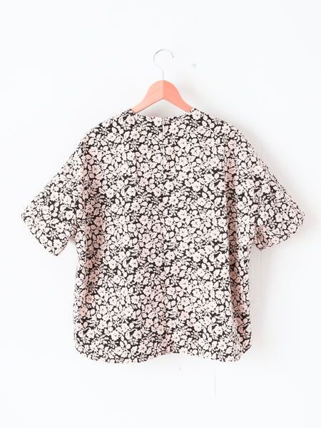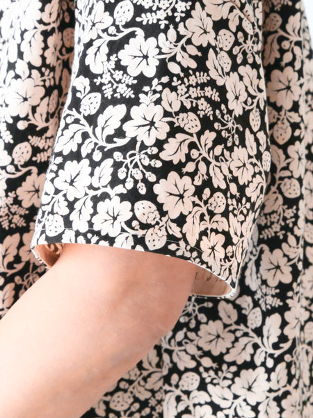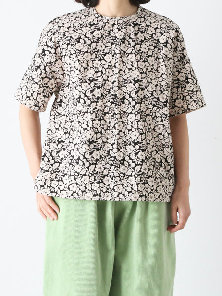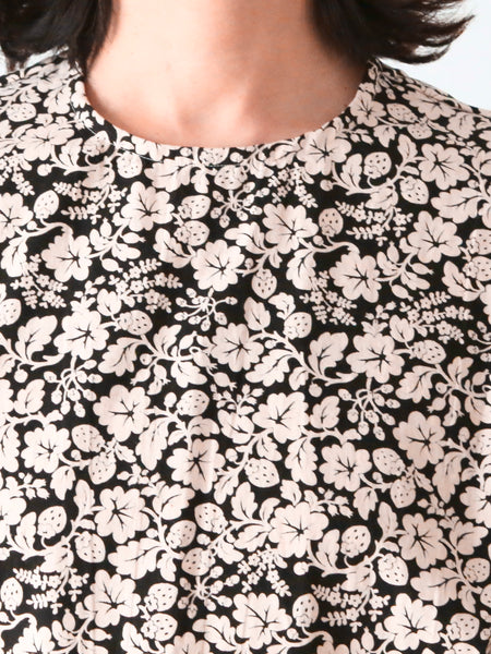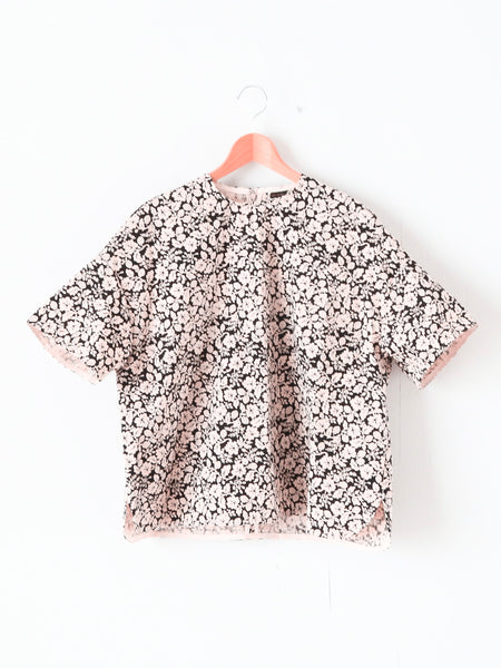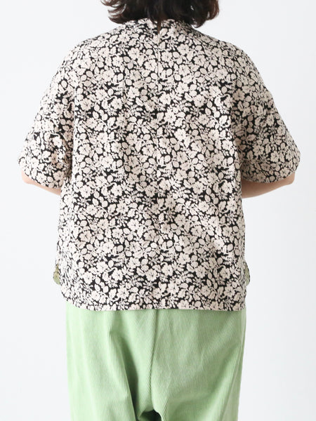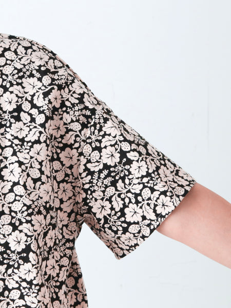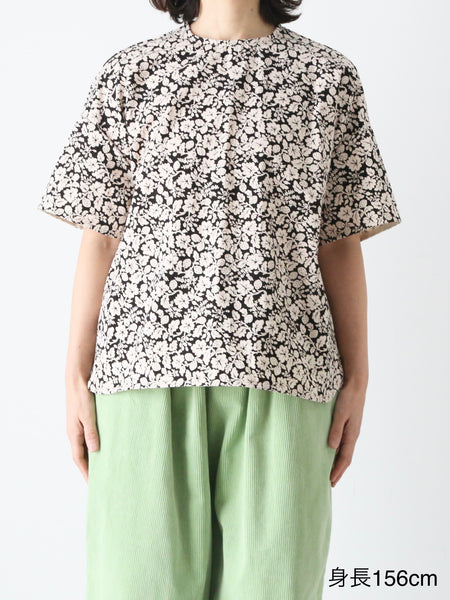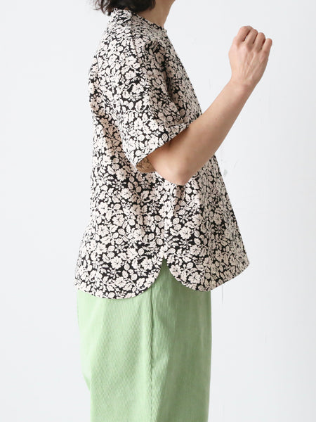 後ろファスナーの被りで、程よくゆったり、ラウンドしたサイドスリットがかわいいシャツです。