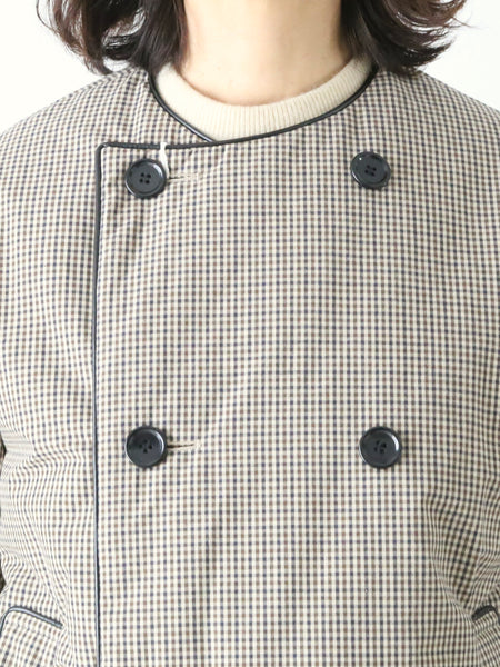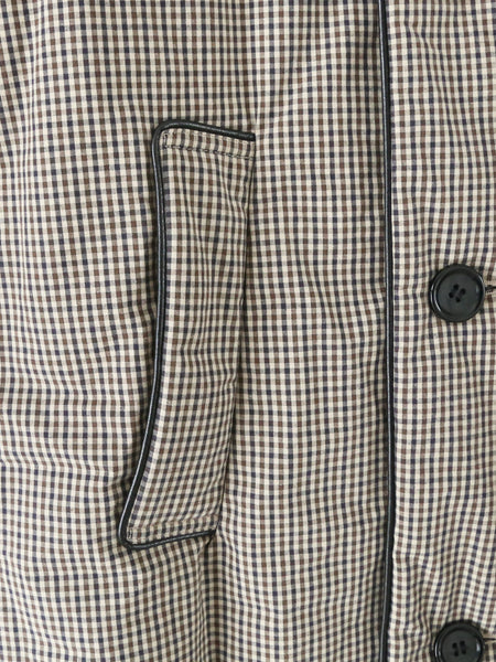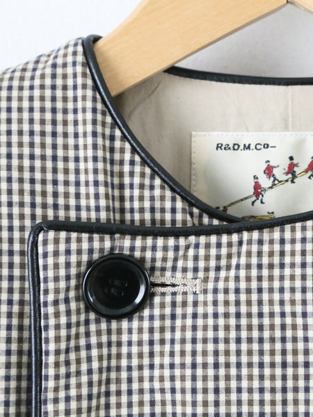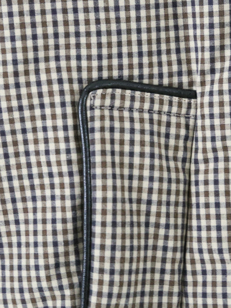ガンクラブチェック生地で、黒革でトリミングされています。