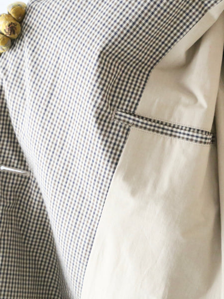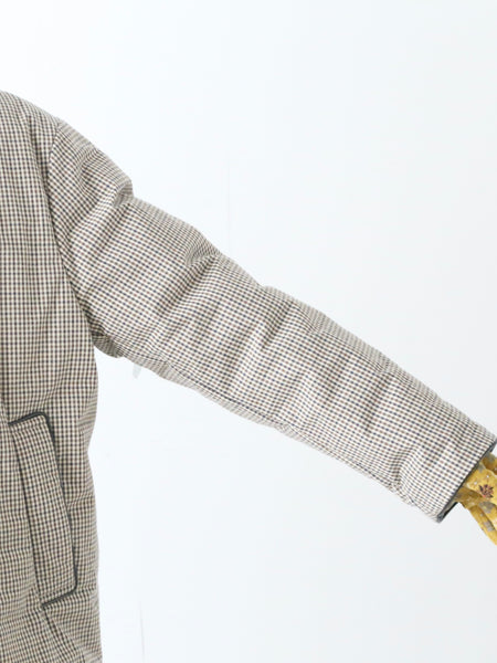 ガンクラブチェックは元々狩猟の時に使われたチェックなので、遠くから見ると無地にも見える、自然になじんでやさしいチェック。