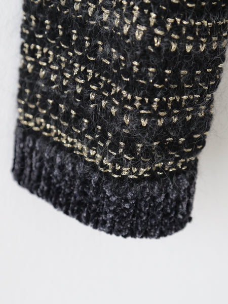 23AWコレクションのテーマでもある"パリの1920年代"のイメージをラメ糸、綿やウール、モヘヤ糸を使用してボーダーで表現。