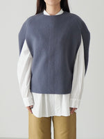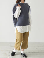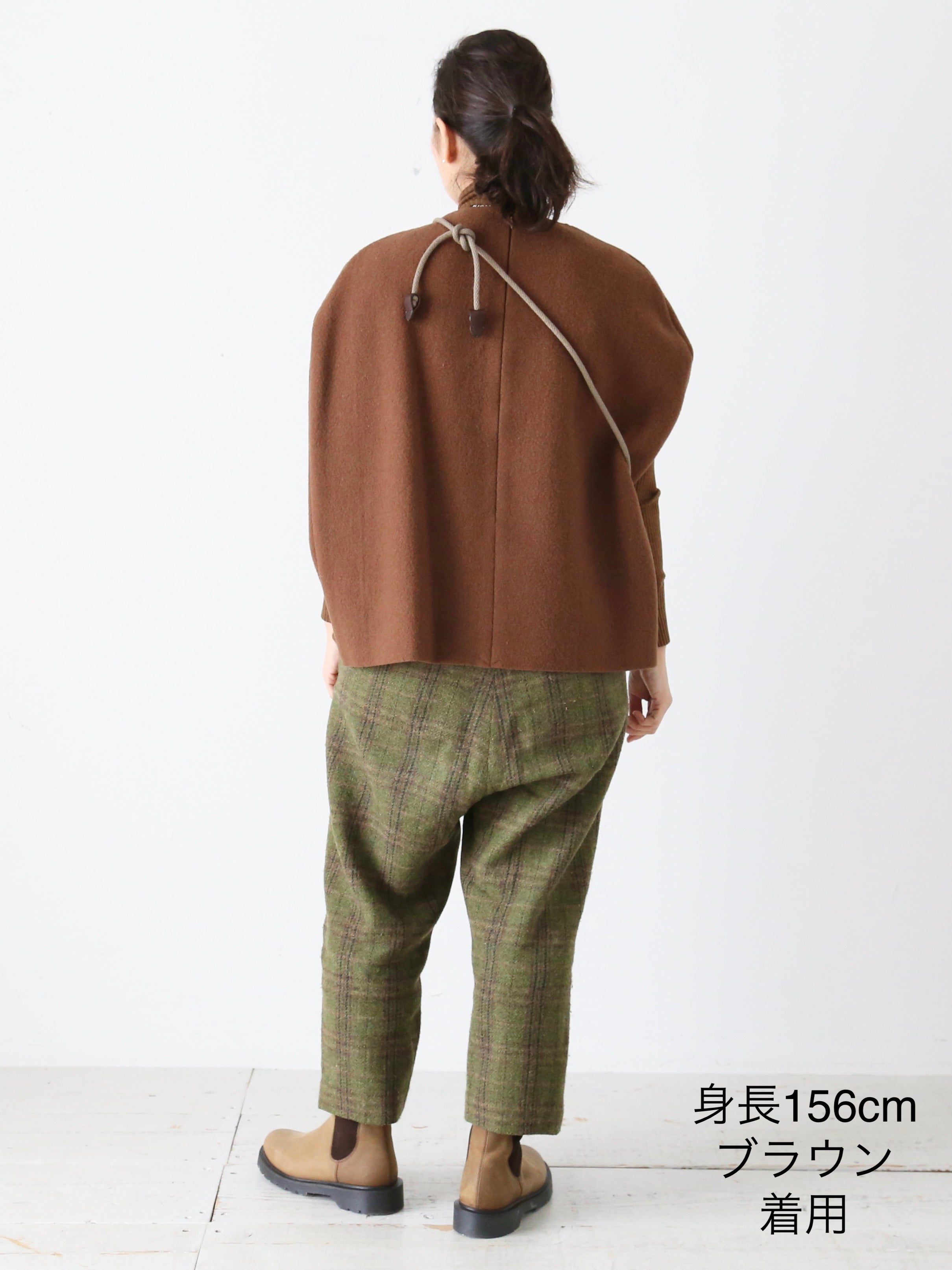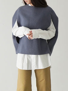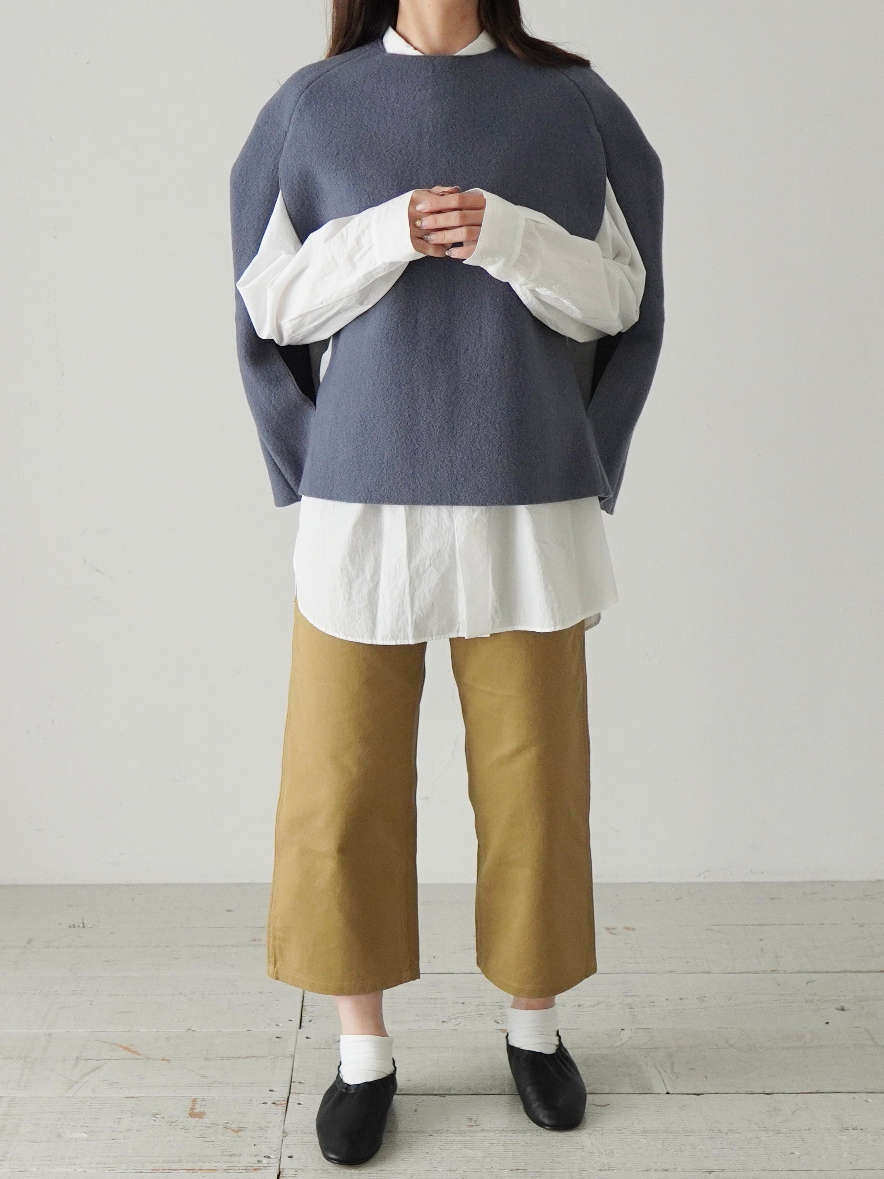 温かみのあるウールフェルトのニットポンチョプルオーバーです。