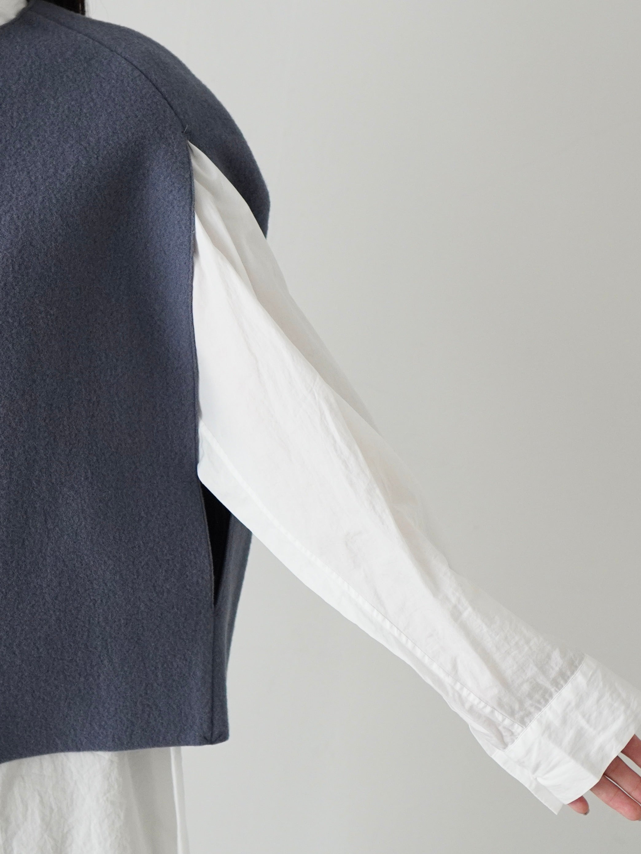 いつものスタイリングにベストのように重ねるだけで一気に雰囲気のあるスタイルに・・・