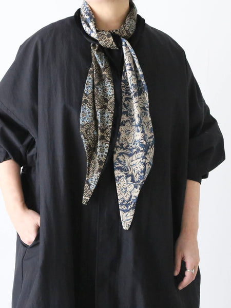 頭を大きく包んだり、ねじってポイントにしたり、結び目の位置を上にしたり下にしたりと、スカーフのようにしたり・・・使い方は自由自在です。
