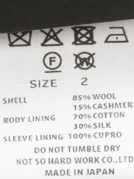 素材:ウール85% カシミヤ15% 裏地:コットン70% シルク30% 袖裏地:キュプラ100%