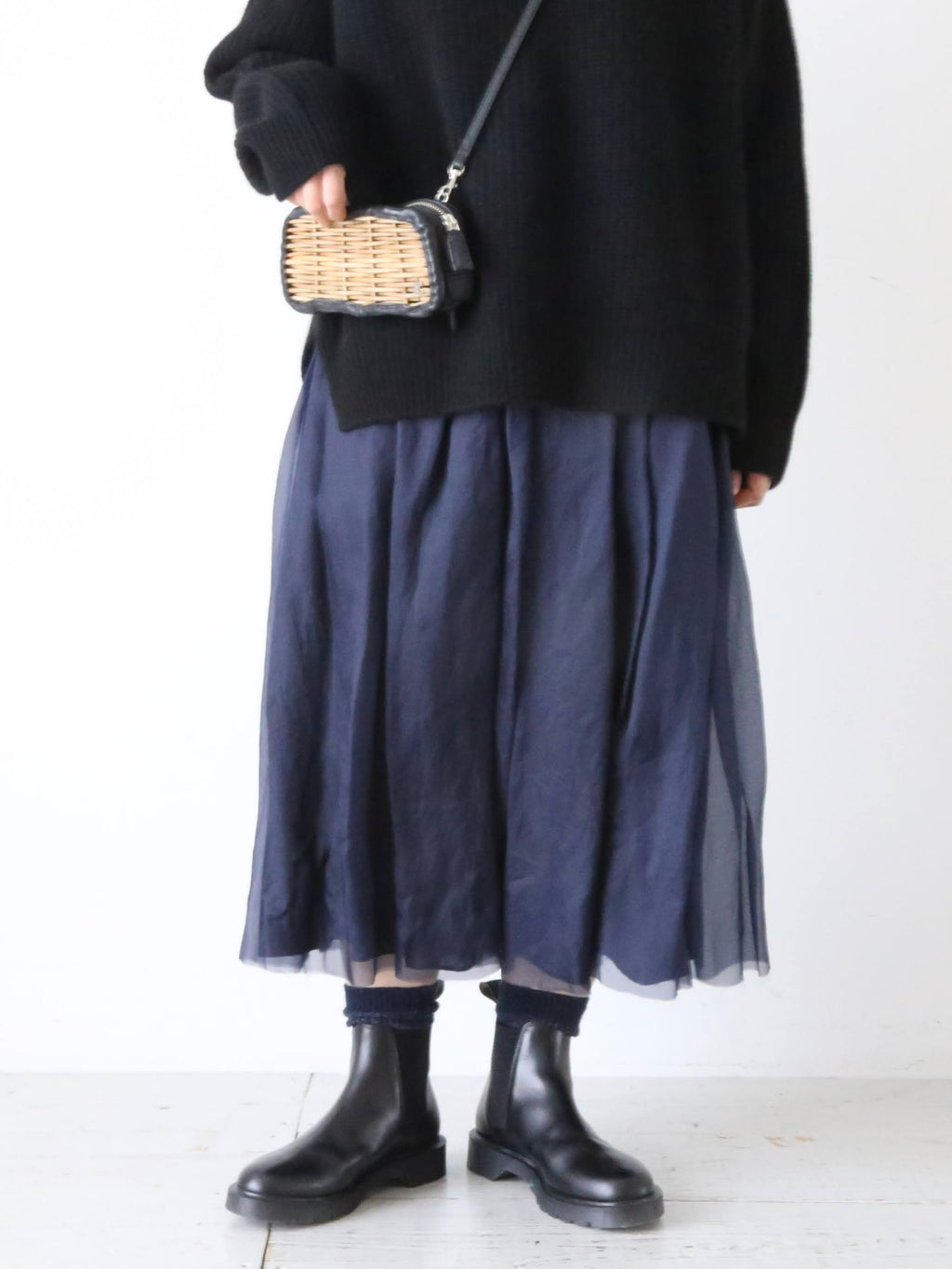 微妙に違う色を組み合わせ、レイヤーすることで、コーディネートに立体感と奥行きを出しています。