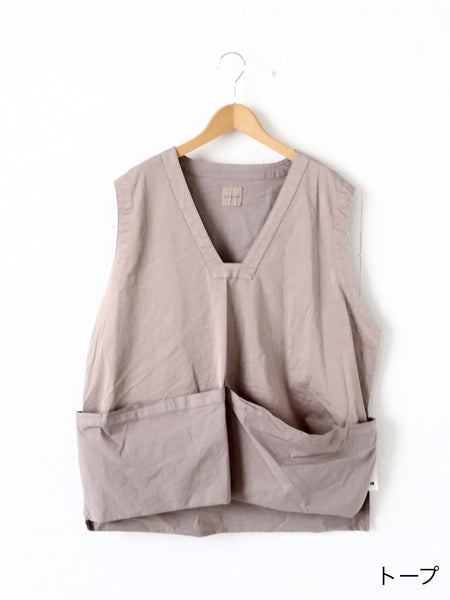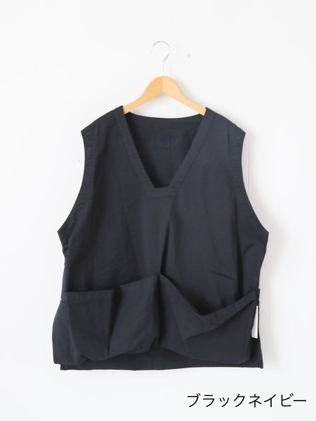 GARMENT DYE COTTON*SILK STRETCH TWILL CLOTH Work Pullover Vest