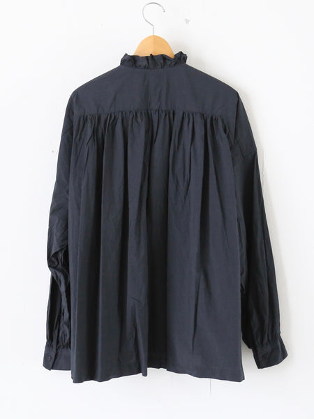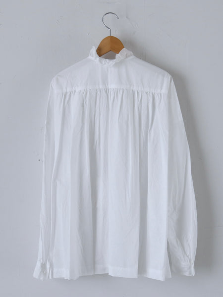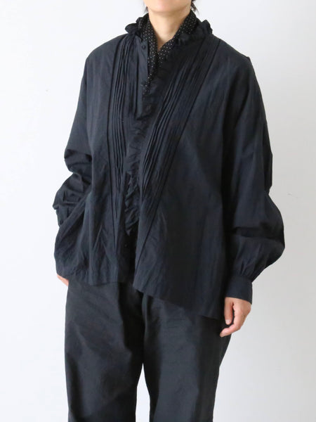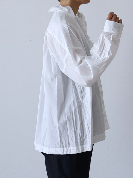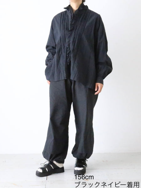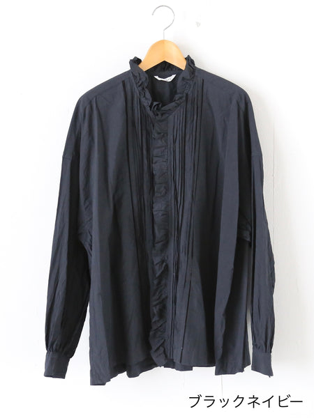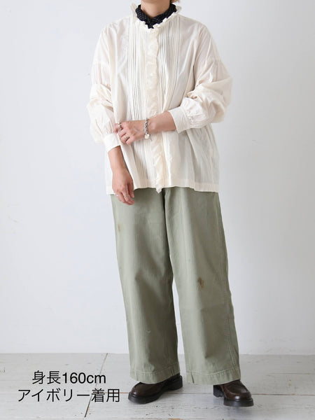 首元は程よく開いており、スカーフやネックレスなどのアレンジも楽しめます。