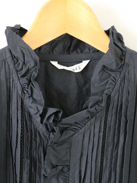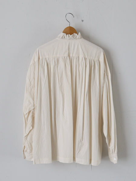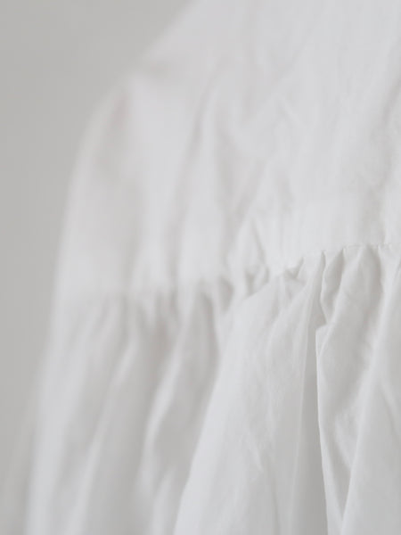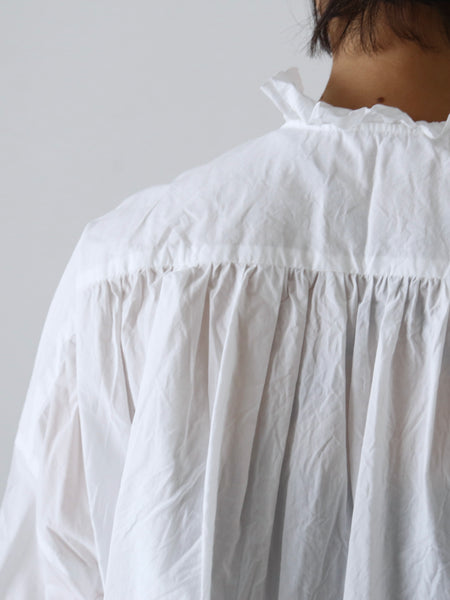 たっぷりとギャザーを入れた袖は、ふんわりとしたシルエットで女性らしさを引き立て、