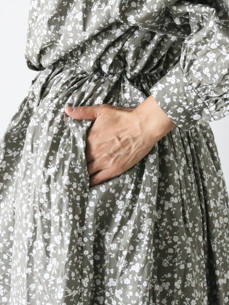 フラワープリントコットンストレッチクロスのドレスです。