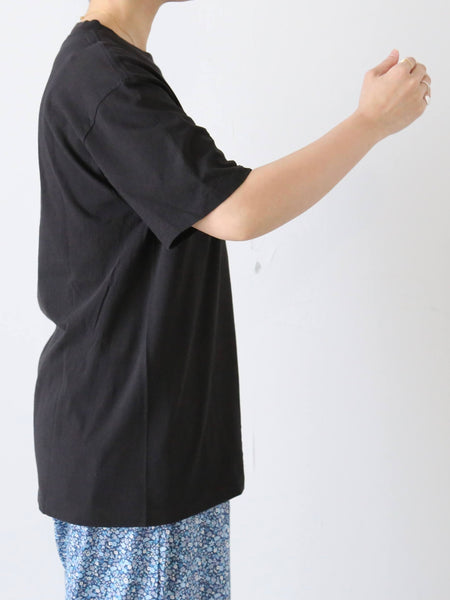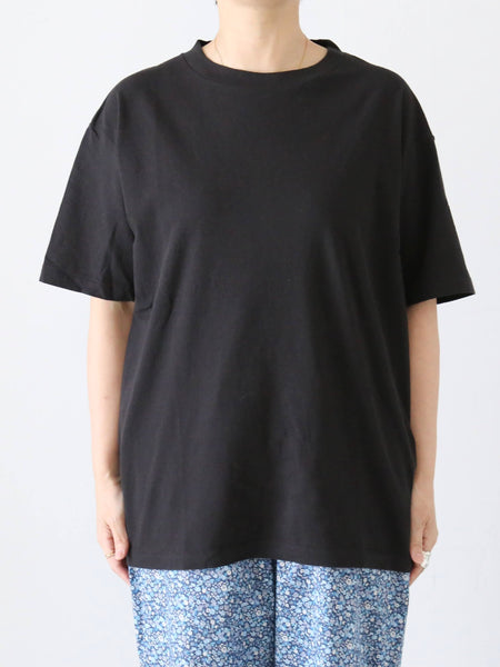 首の開きが絶妙で、カジュアルすぎない大人のリラックス感が。