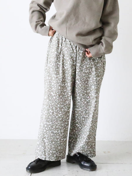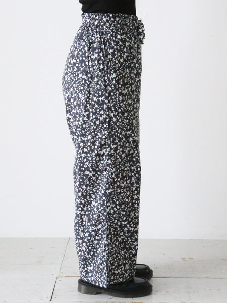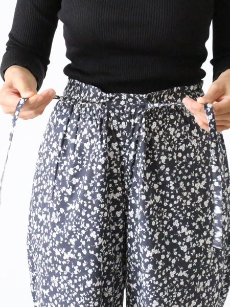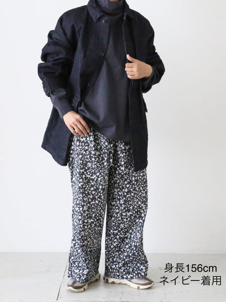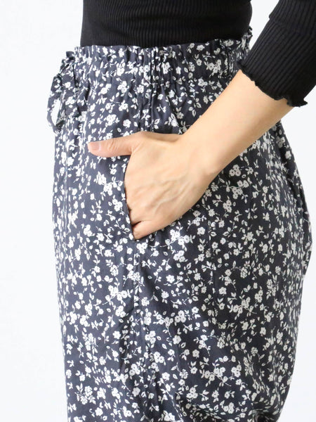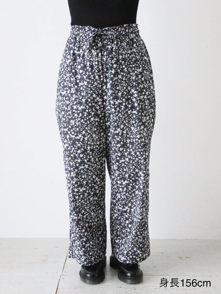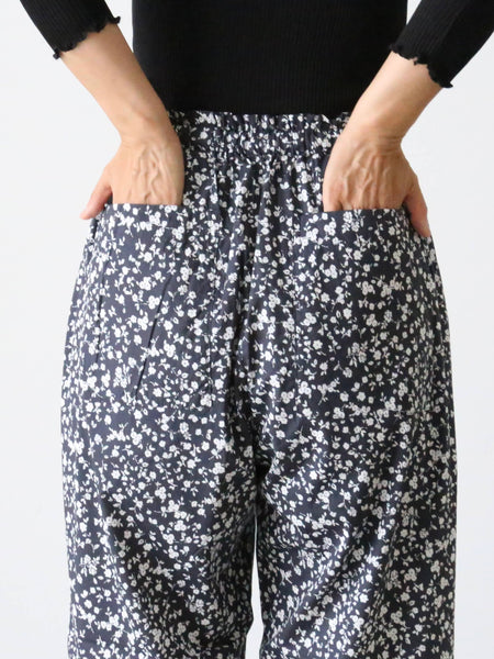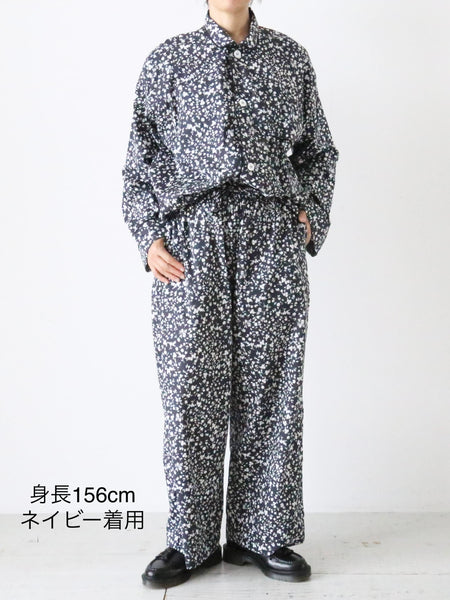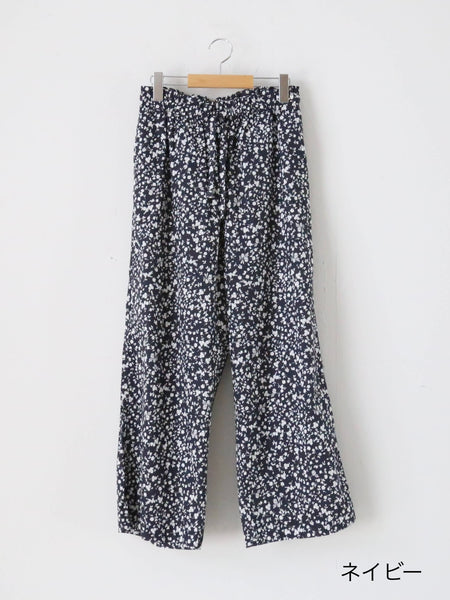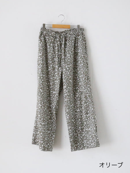 フラワープリントコットンストレッチクロスのパジャマパンツ。