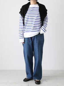 糸全体の軽さを追求したのでとても軽く、さらりとした肌触りが特徴の、軽さのある5Gニットを使用。