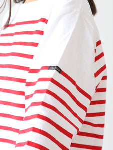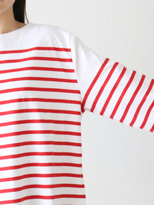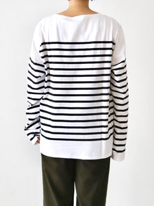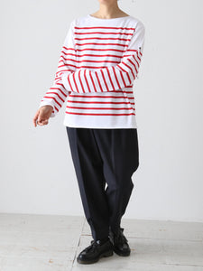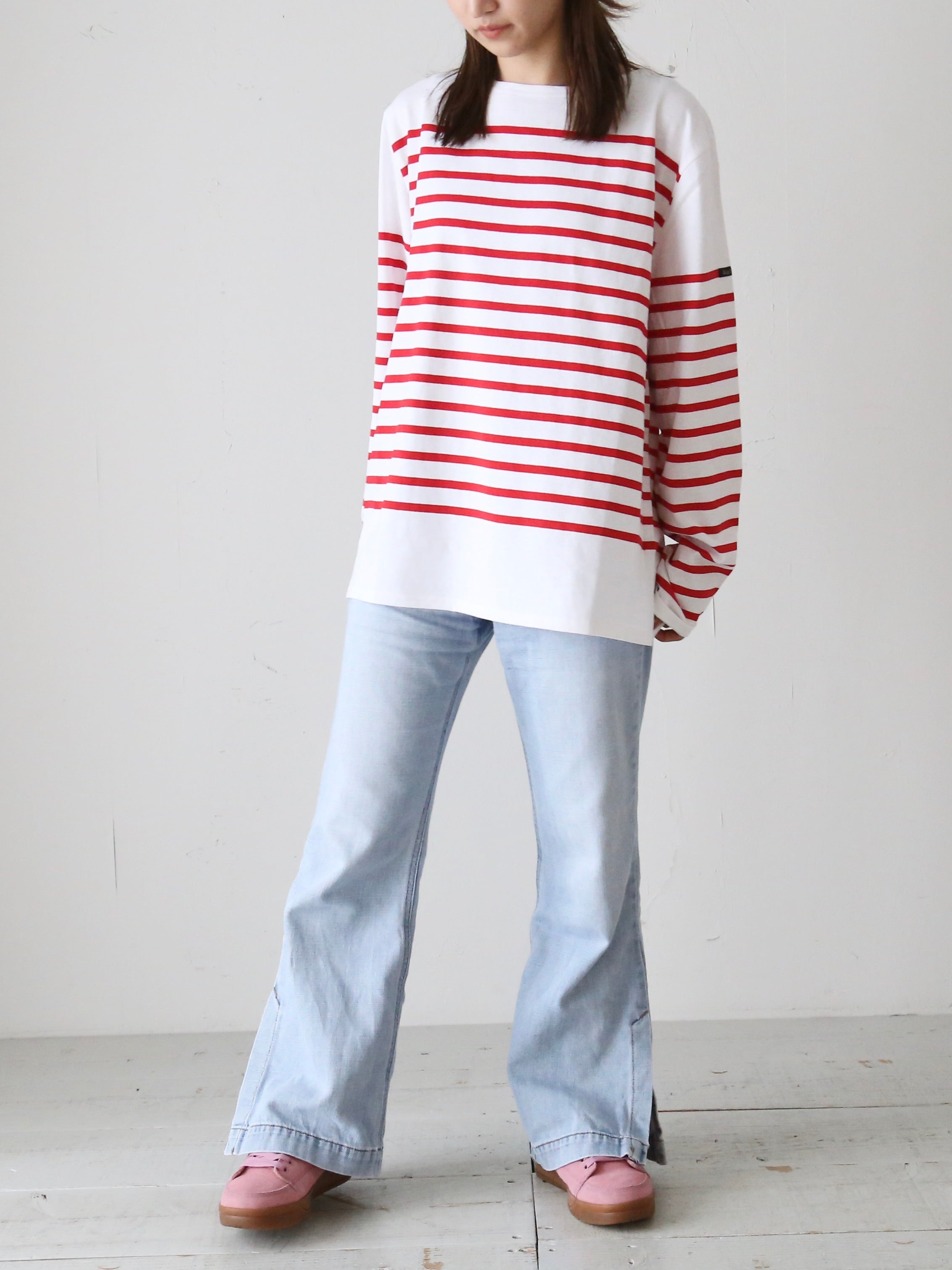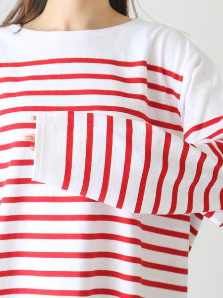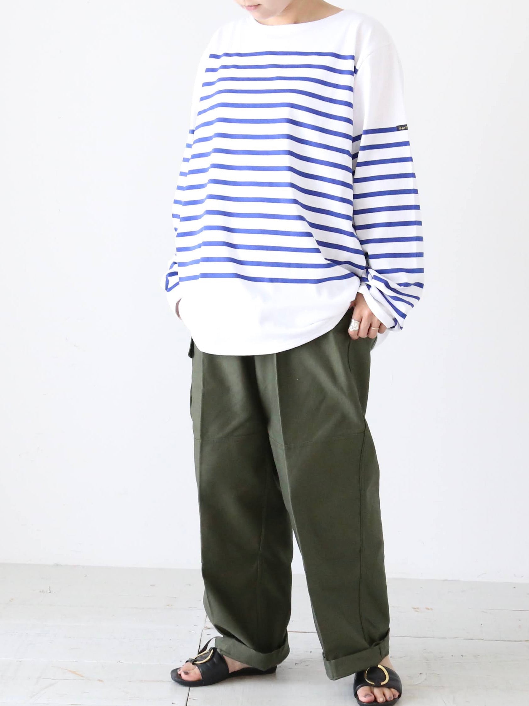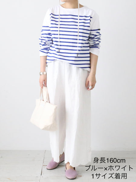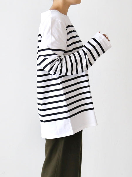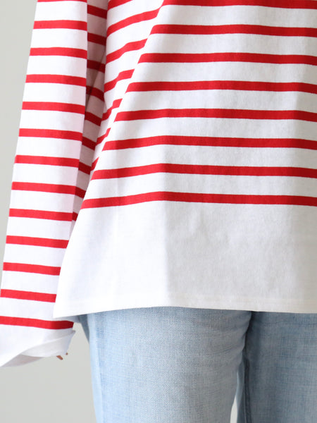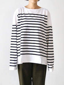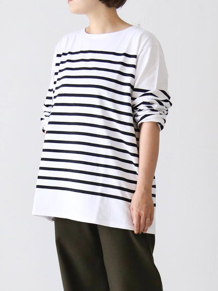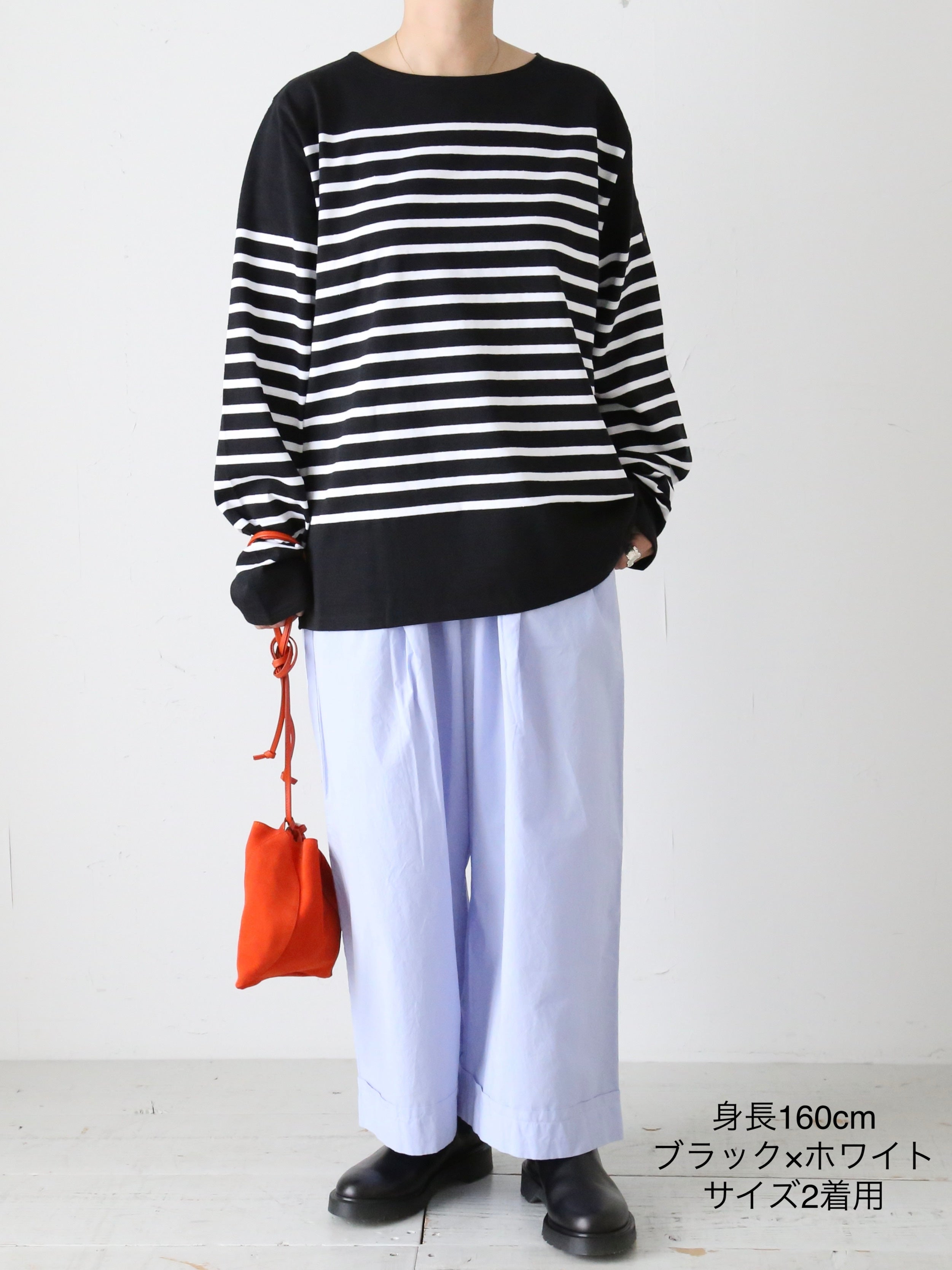 リラックスしたサイジングが抜け感を与え、カジュアルなボーダーもこなれた印象に着こなせます。