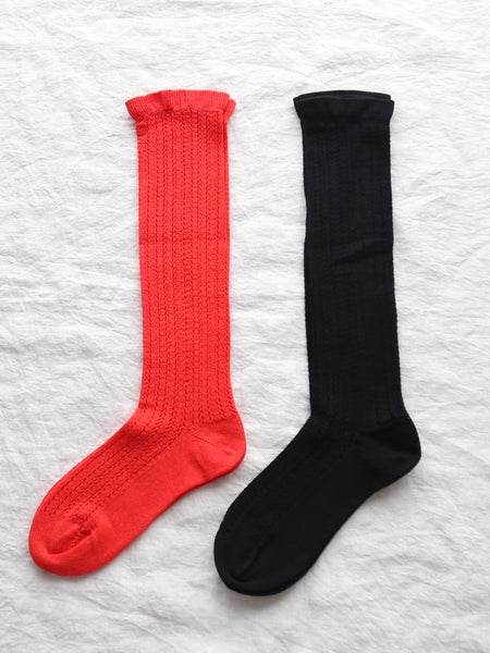 綿のさわやかさとウールの温かみを併せ持つシーズンレスな素材感が特徴のソックスです。