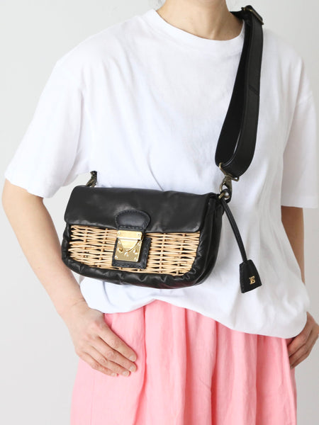 A shoulder bag featuring soft cow leather and a structured wicker base.