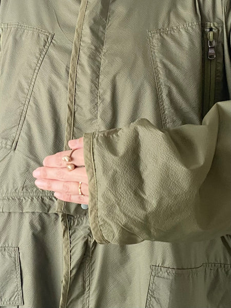 ALWEL Convertible Utility Coat [RIP-1] Color: Charcoal Gray / Green Olive Material: 100% Nylon Size: F size Sleeve length: 82.5cm Width: 67cm Length: 41cm (short) 115cm (long) *Measurements are taken flat. Please allow for some error.