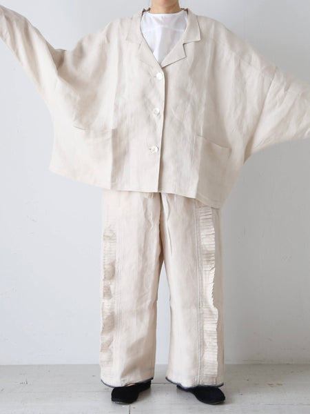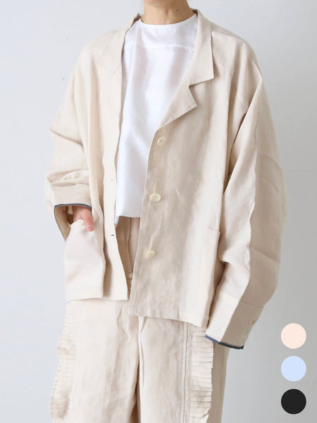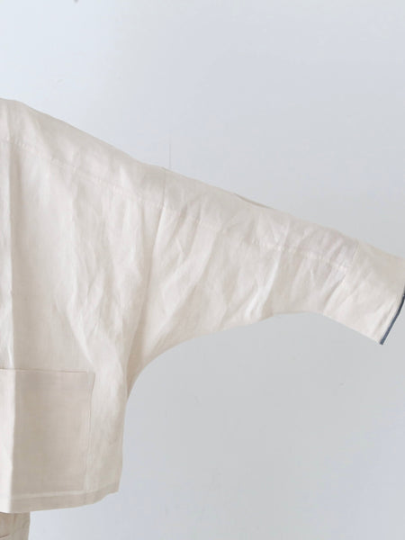 BUNON Raglan Jacket [BN2641] Material: 100% Linen Colors: Ecru / Light Blue / Charcoal Size: M size Sleeve length (from center back): 85cm Width: 78.5cm Length: 58cm *Measurements are taken when laid flat. Please allow for slight discrepancies. This product is also sold simultaneously in-store. We will check the stock status after you place your order, but there may be cases of "out of stock". In such cases, we will contact you by email, so please understand.