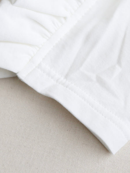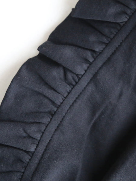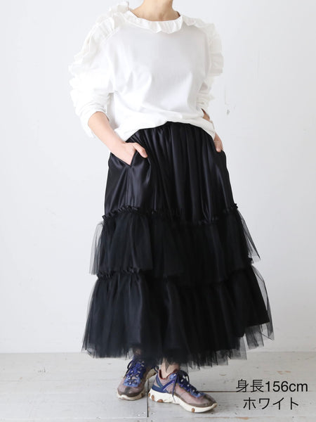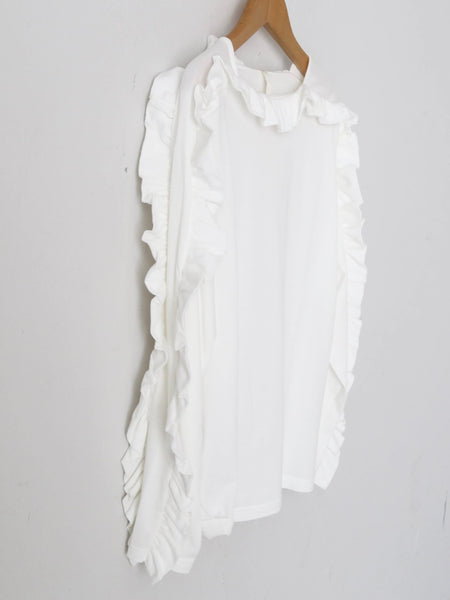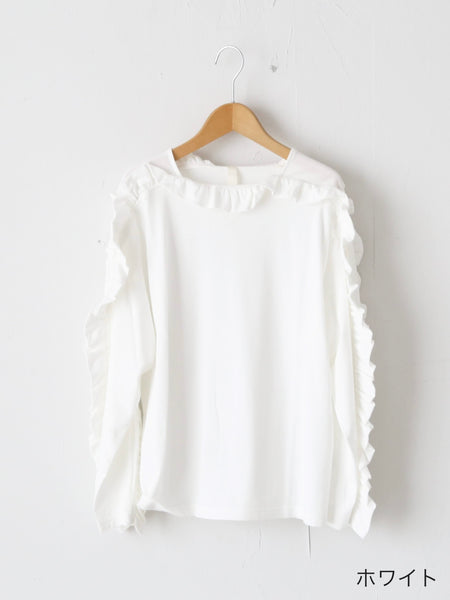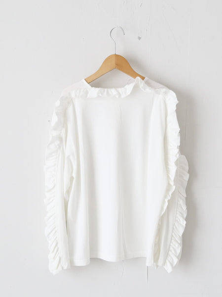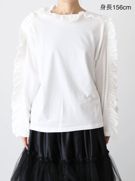 Shida Frill Big Pullover [260102] Colors: White / Black Material: 100% Cotton Size: One size Sleeve length (from center back): 73cm, Chest width: 53cm, Length: 61cm, Armhole: 25cm *These are measurements taken when laid flat. Please allow for slight discrepancies.