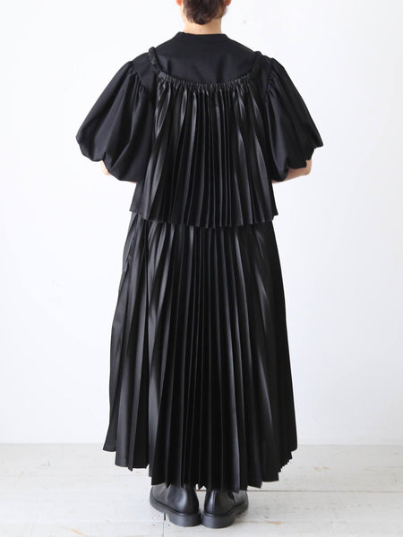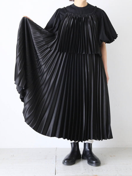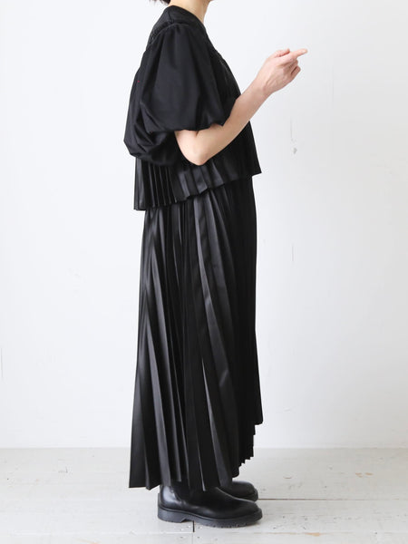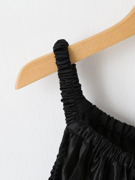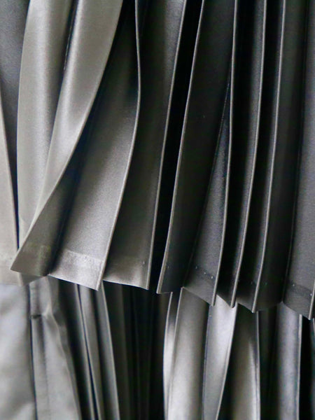 This garment uses ester satin fabric, which is very popular in noir collections, known for its beautiful drape that creates a flattering silhouette.