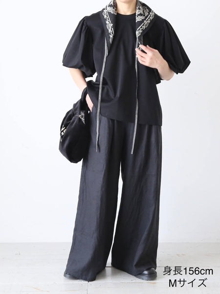A simple top with soft balloon sleeves, made from noir kei ninomiya’s popular cotton ponte fabric.
