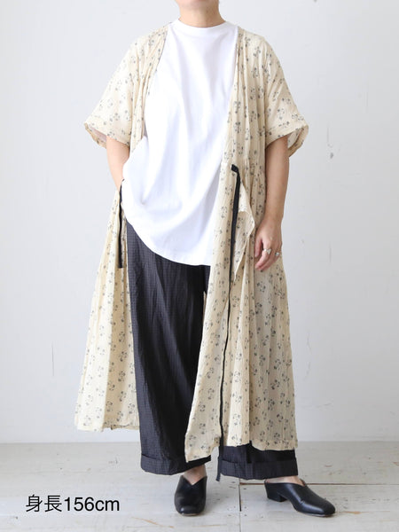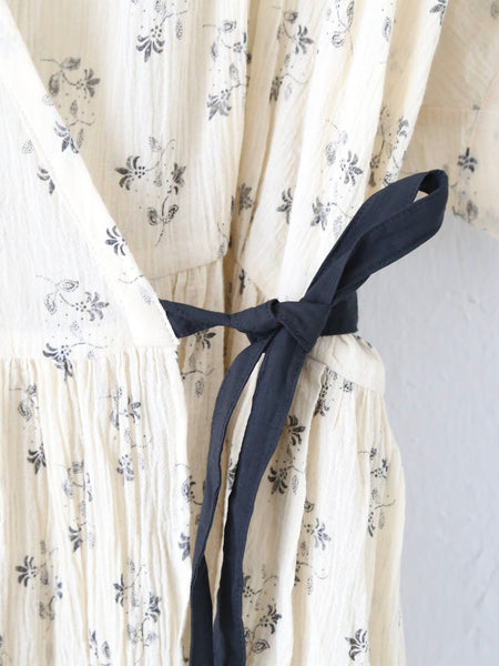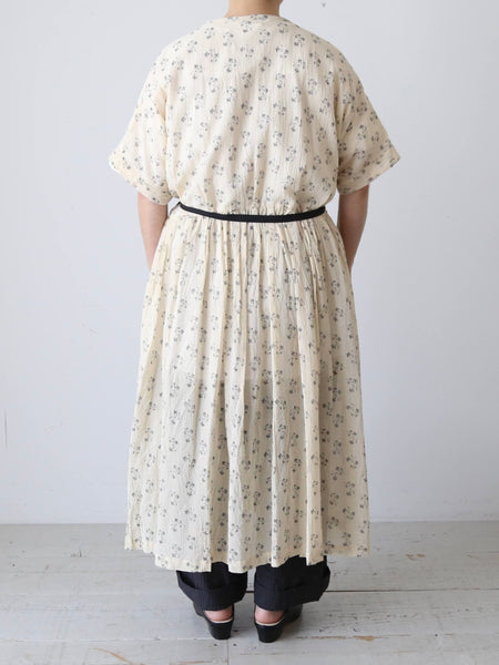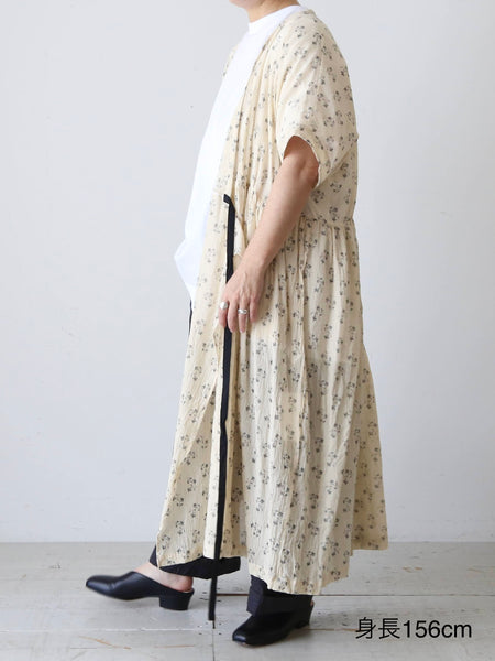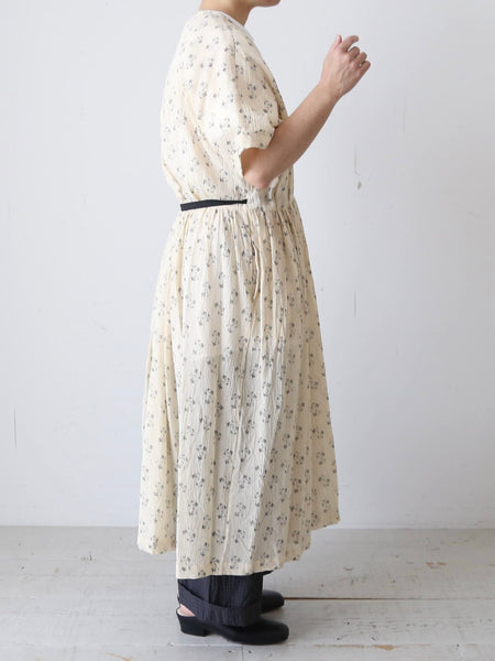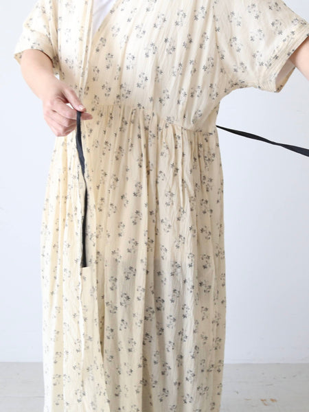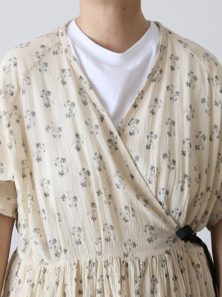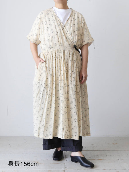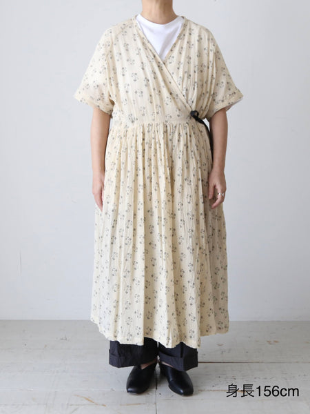 TOUJOURS Half Sleeve Pleated Cache-Coeur Dress [TM44LD05] Color: Natural Material: 100% (FINE COTTON GAZE PIGMENT FLORAL PRINT CLOTH) Size: 1 size Sleeve length (from center back to cuff): 45.5cm Length: 114cm *Measurements are taken flat. Please allow for slight variations.