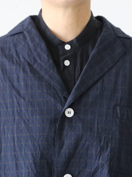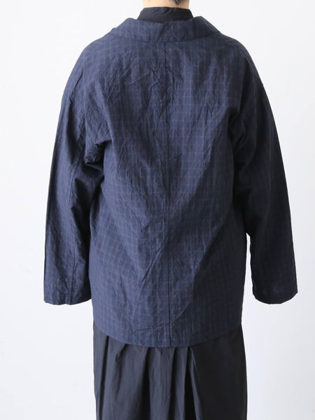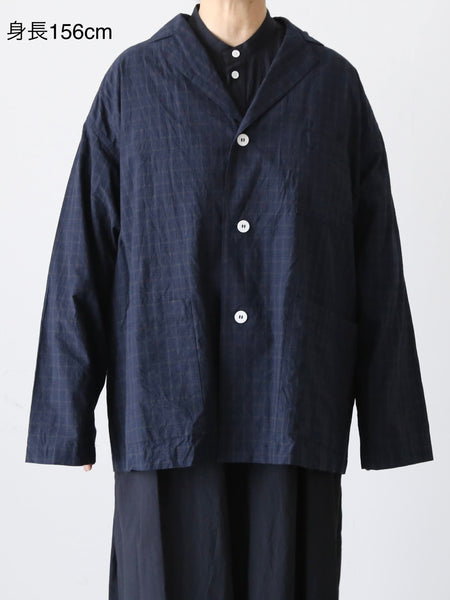 TOUJOURS Atelier Jacket (Hand Wash Cotton Tattersall Plaid) [YM44TS01] Color: Navy Material: 100% (HARD WASH COTTON TATTERSALL PLAID CLOTH) Size: Size 2 Sleeve length (from center back): 80.5cm Body width: 63cm Body length: 73.5cm *These are measurements taken flat. Please allow for slight discrepancies.