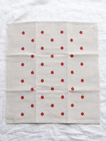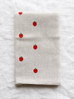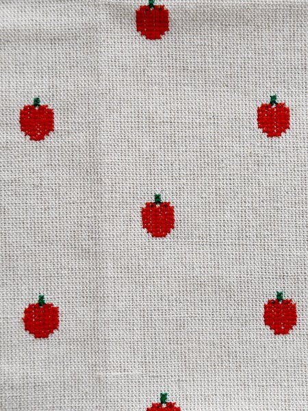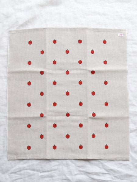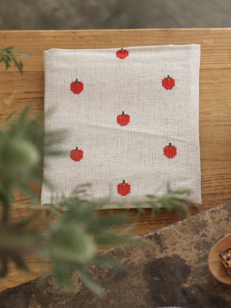 リネン独特のフラックス地に真っ赤な「りんご」がモチーフ。
