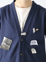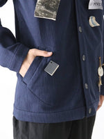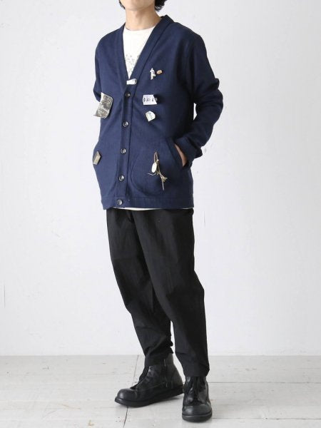 ざっくりしたコットンのカーディガン。 深くVネックになっているので、さっと羽織る便利な定番アイテムです。 大きなラウンドをデザインしたポケットが、懐かしいデザインとなっています。 袖口もシンプル。 フランクリーダーが取集したアイテムをたくさん取り付けた、エスペシャリーな限定品、芸術品のカーディガンです。 こちらは、一つ一つ限定品、ついているものは選べませんが、 デザイナーが一つ一つどれをつけようか?と仕事している様が正に伝わって来るようです。 『過去に20年間にわたってコレクションしてきたアイテムを通して、長い間、私のお客様である皆様に『真のフランクリーダー』を見せたいと思っていました。 紙切れや見つけた物は、興味深いフォントやロゴ、コレクションいおけるインスピレーションの源。 インスピレーションの嵐で吹き荒れた風によって、飛ばされた道端の者たちが、洋服ついた!という感じです。 全てが真のユニークで、貴重なピースですし、クールなアイテムだと思っています。 もちろんそれらのモノを取って付け替えたり、外して着たりそれはあなた次第です。 フランクリーダーの意思を受け継いで“あなただけの一着”にしてみてはいかがですか? ============================ FRANK LEDER”ARCHIVE"LINE 昔のデザインを大切に想う気持ちと興味深いデザインを作り直すことで過去を見直し、未来へまた違う色や生地で作り出しているパートコレクションです。 ============================