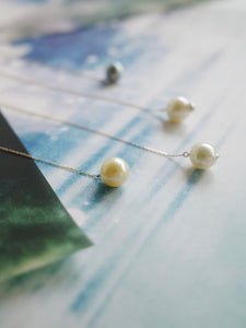 まっすぐに伸びるラインの美しさとその先に揺れるあこや真珠の美しさ際立つピアス。