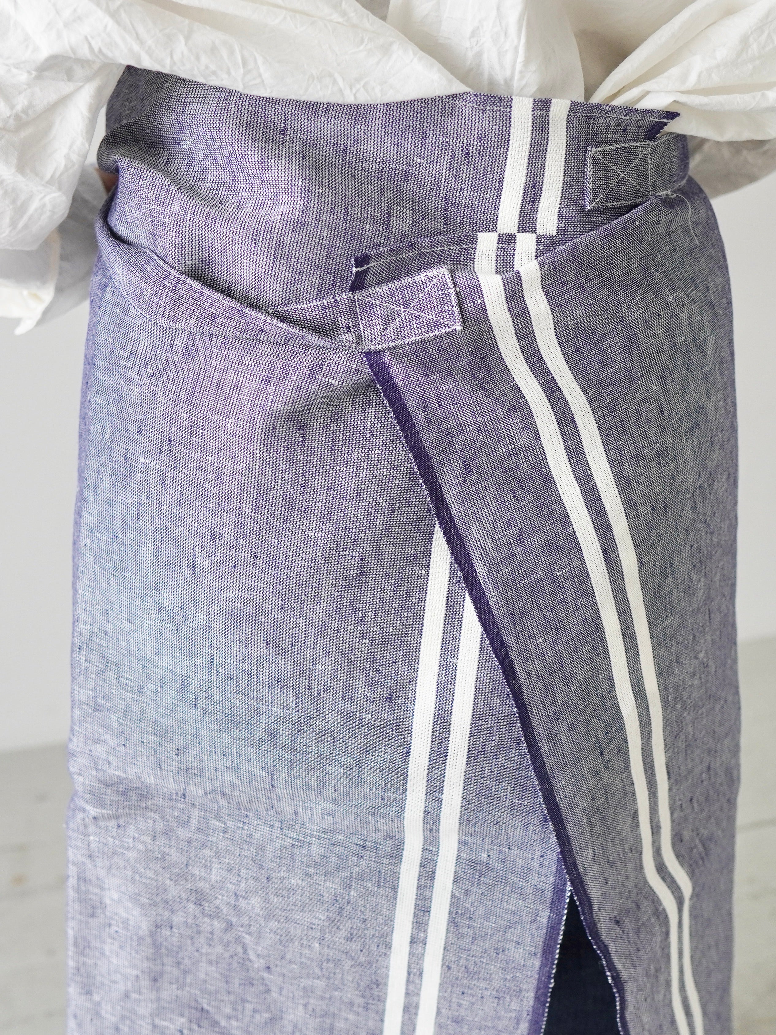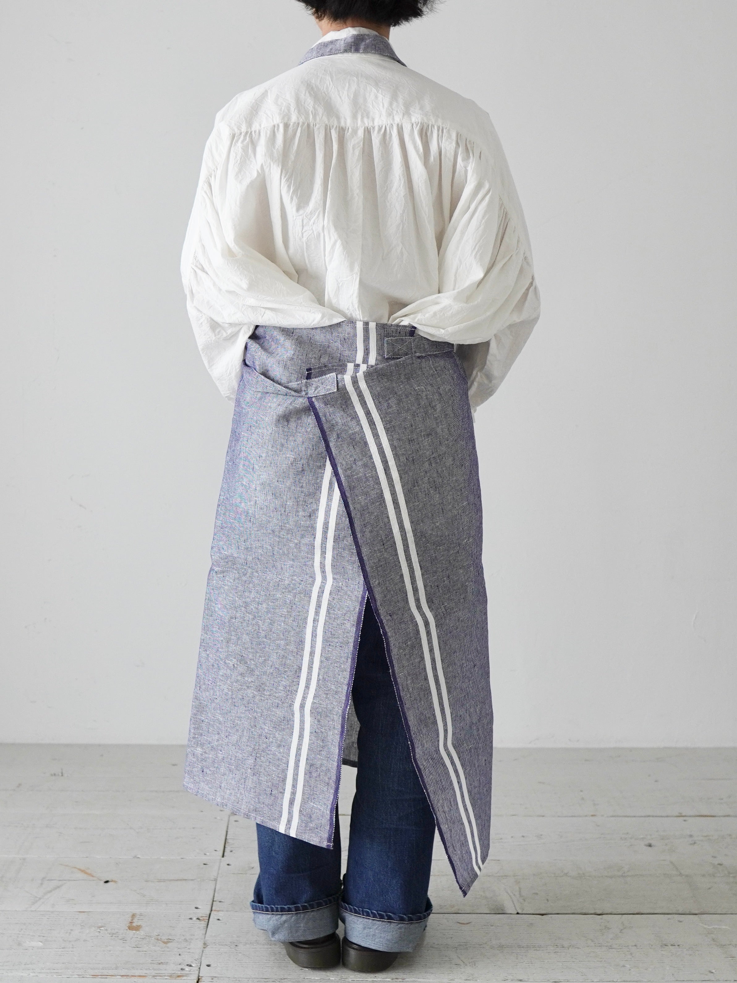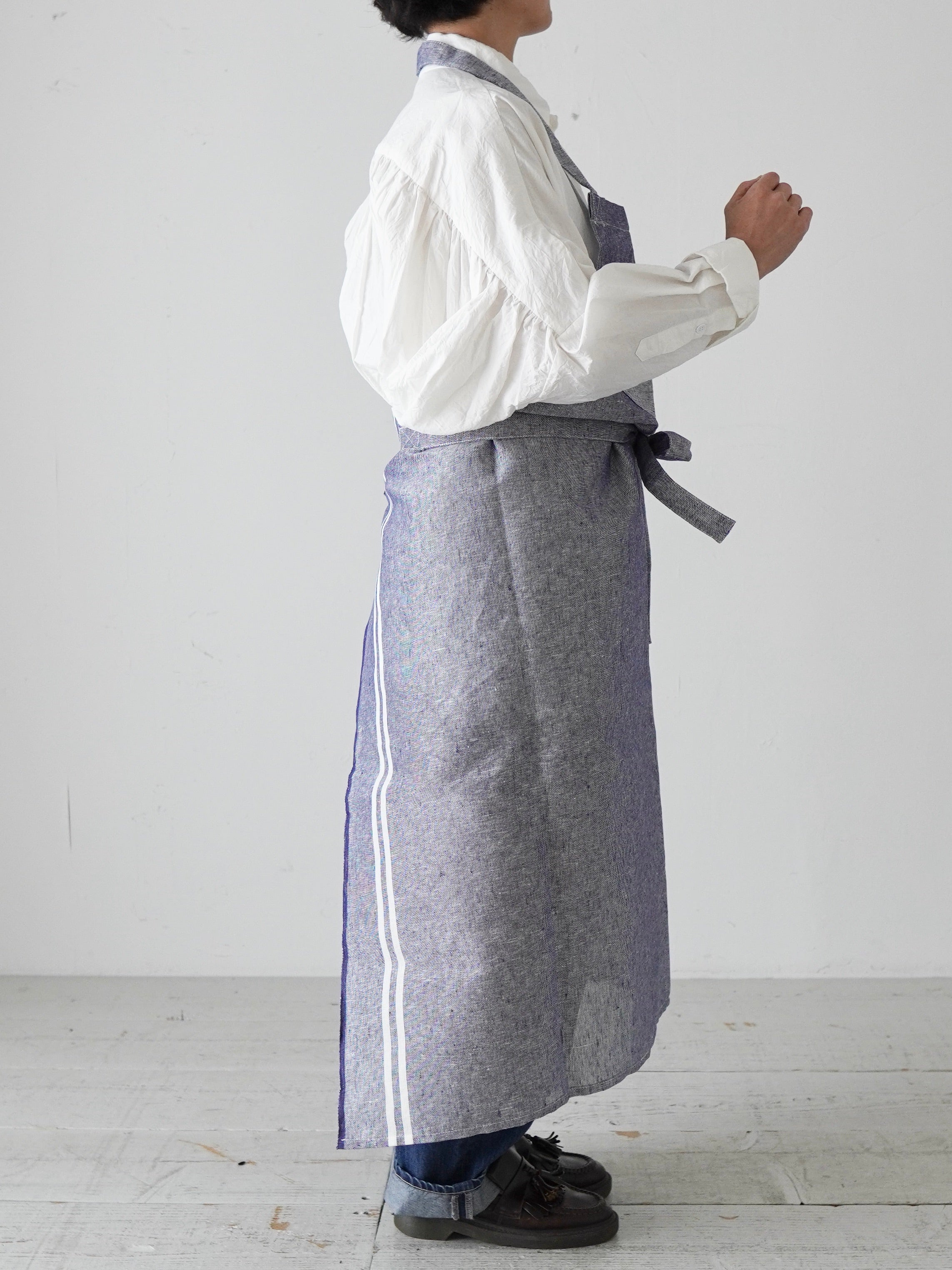 色:ネイビー素材:リネン100%サイズ:丈 104cm (前当て部分から)×幅 111cm*平置き寸法です。多少の誤差はご容赦くださいませ。