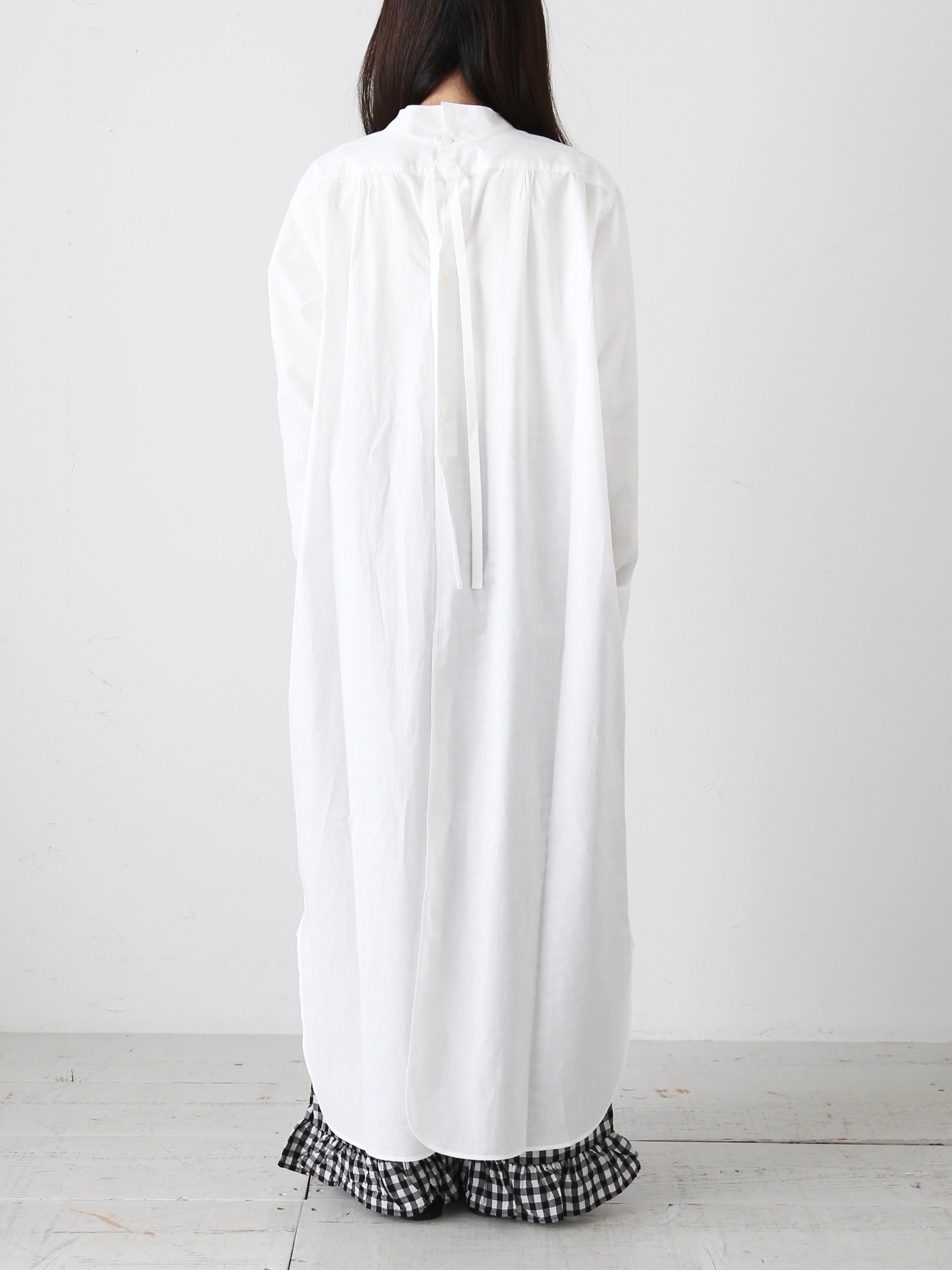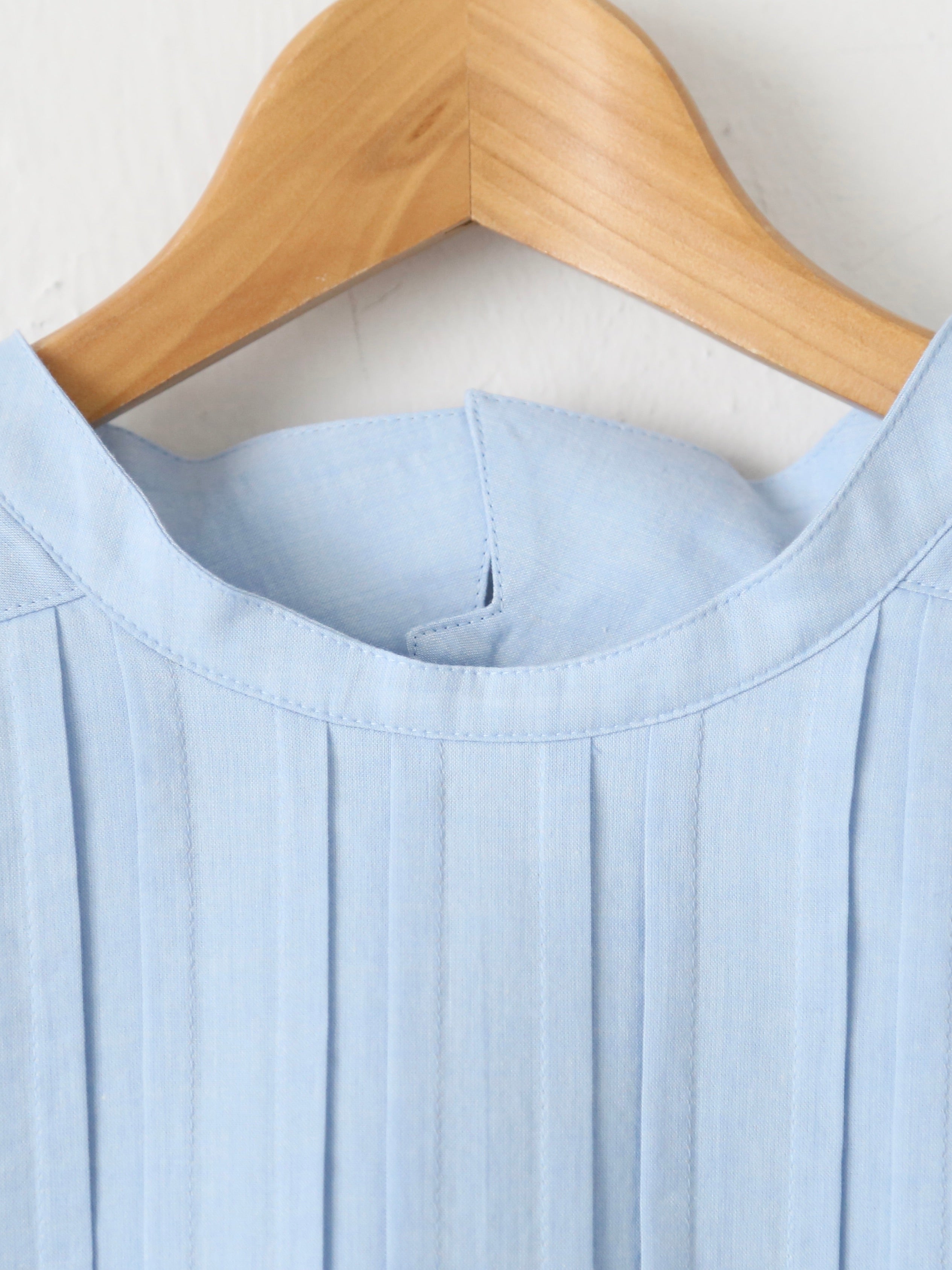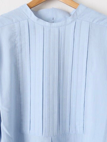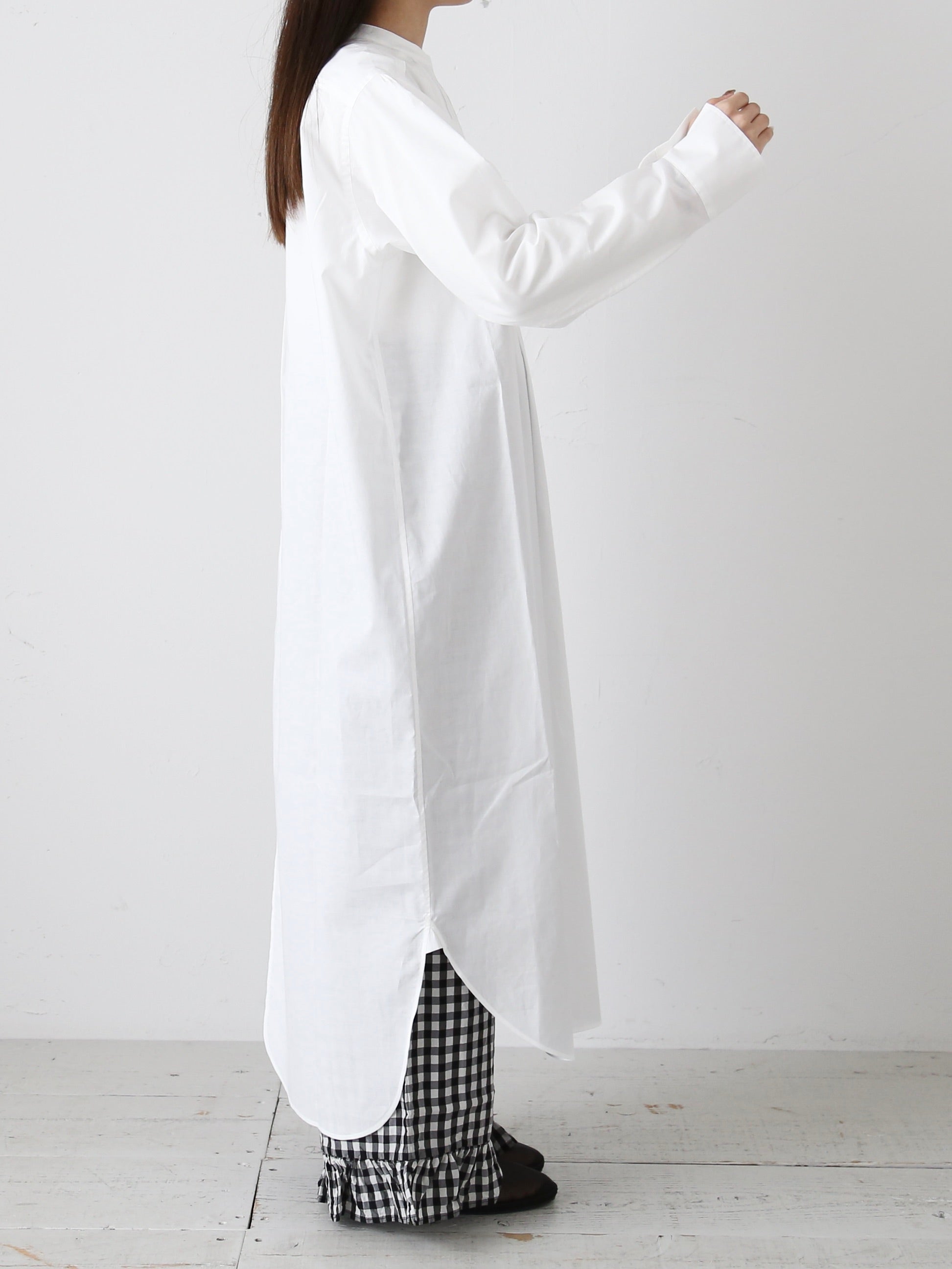 滑らかで軽い生地で、首元は少しスタンド気味のカラー。