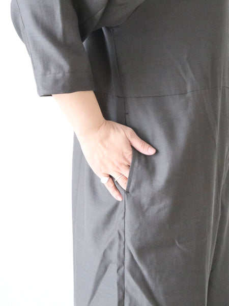 絶妙カラーのスミブラウンは、グレーに少しブラウンが入ったキュプラコットン。