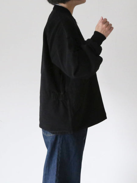 ラグラン袖で、袖口がリブになっていて、フロントのダブルジップで使い勝手もよし。
